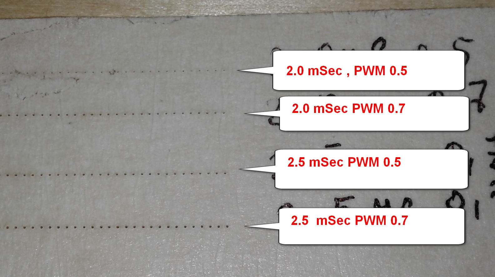 при регулировке PWM от 0.15 до 0.75 точка на фанере получается от еле заметной точки до вполне приличной ямки.