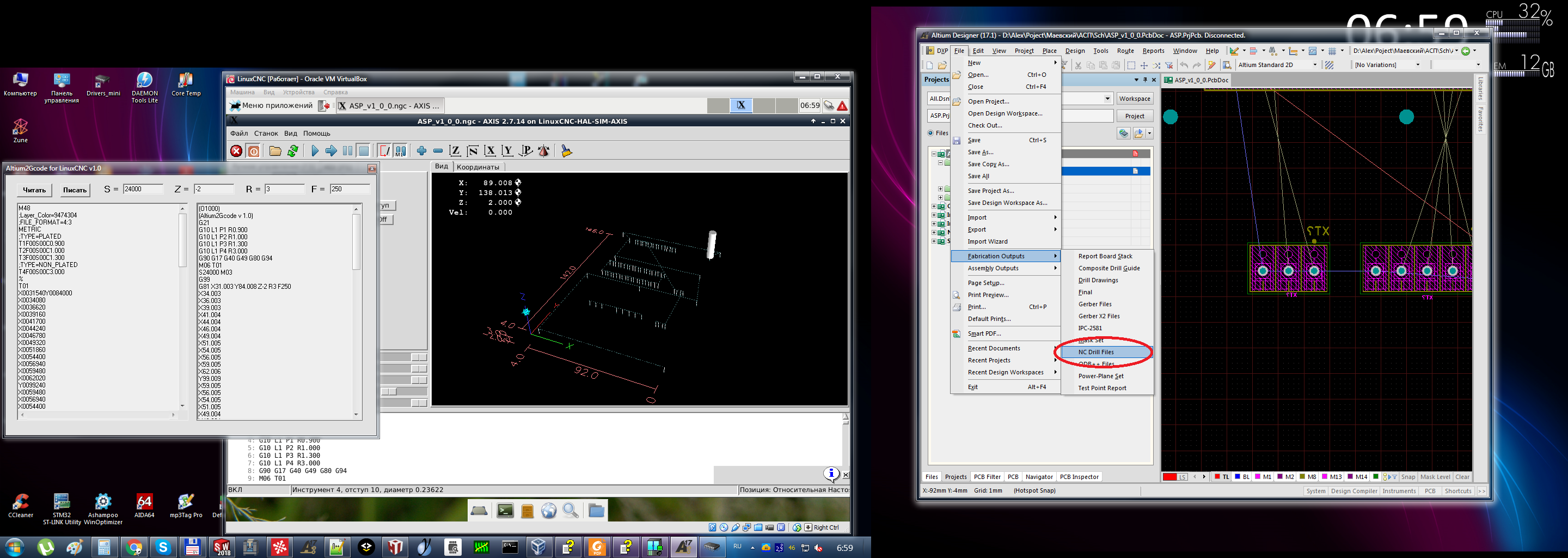 Altium NC drill в Gcode для LinuxCNC