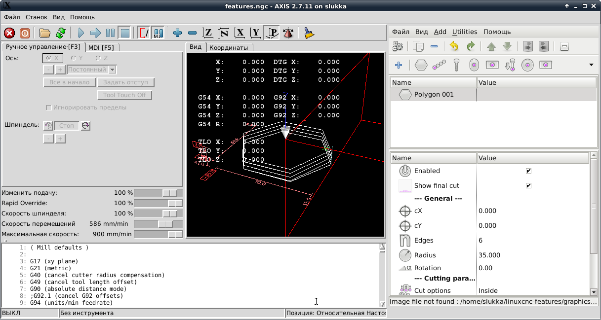 уже пару дней пытаюсь поженить LinuxCNC (2.7.11 с образа) и Features.
