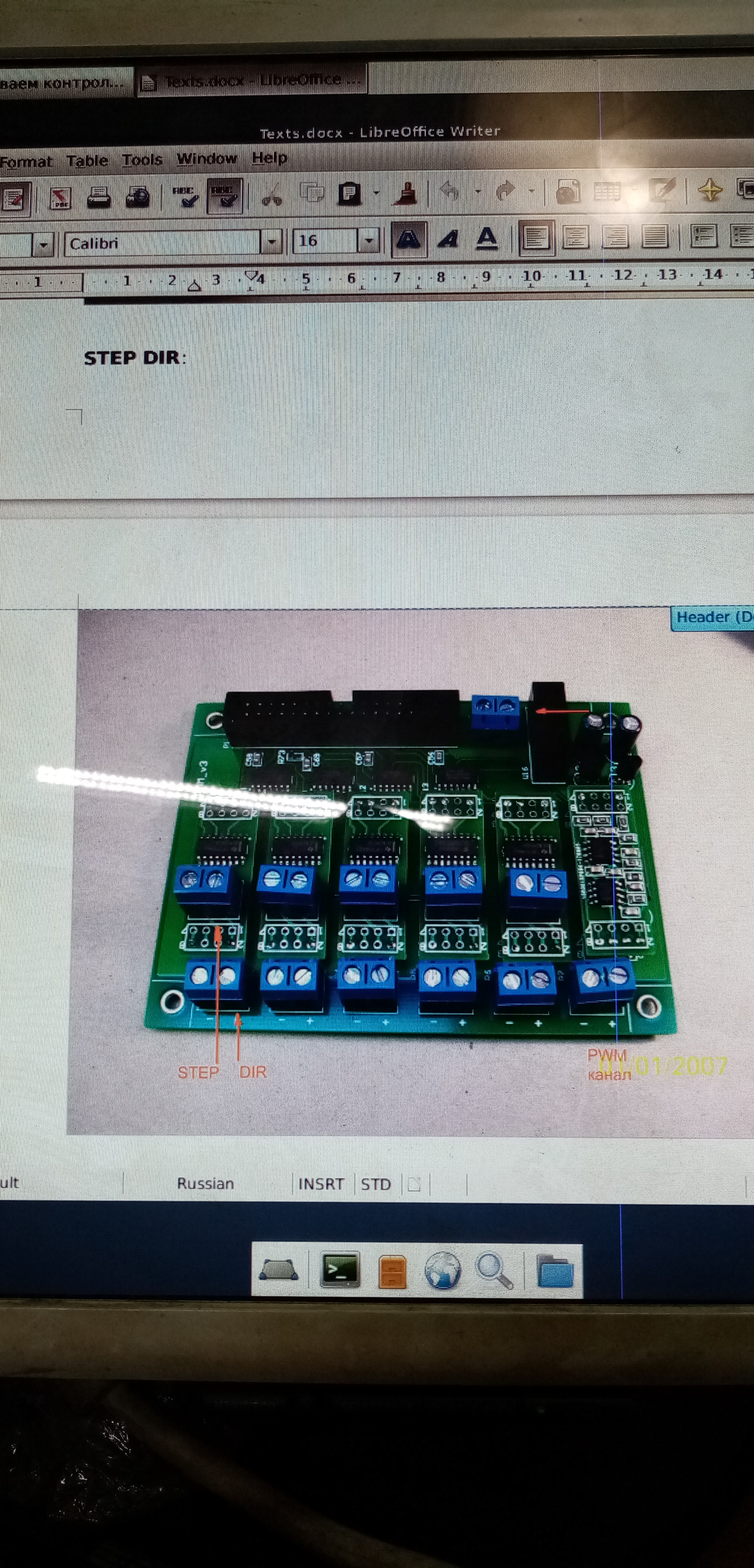 Прикрепляю вариант управления приводом, фото платы степ дир и фото материнки. Ещё в описании вид платы со степ+, степ-, дир+, дир- а у меня другая плата