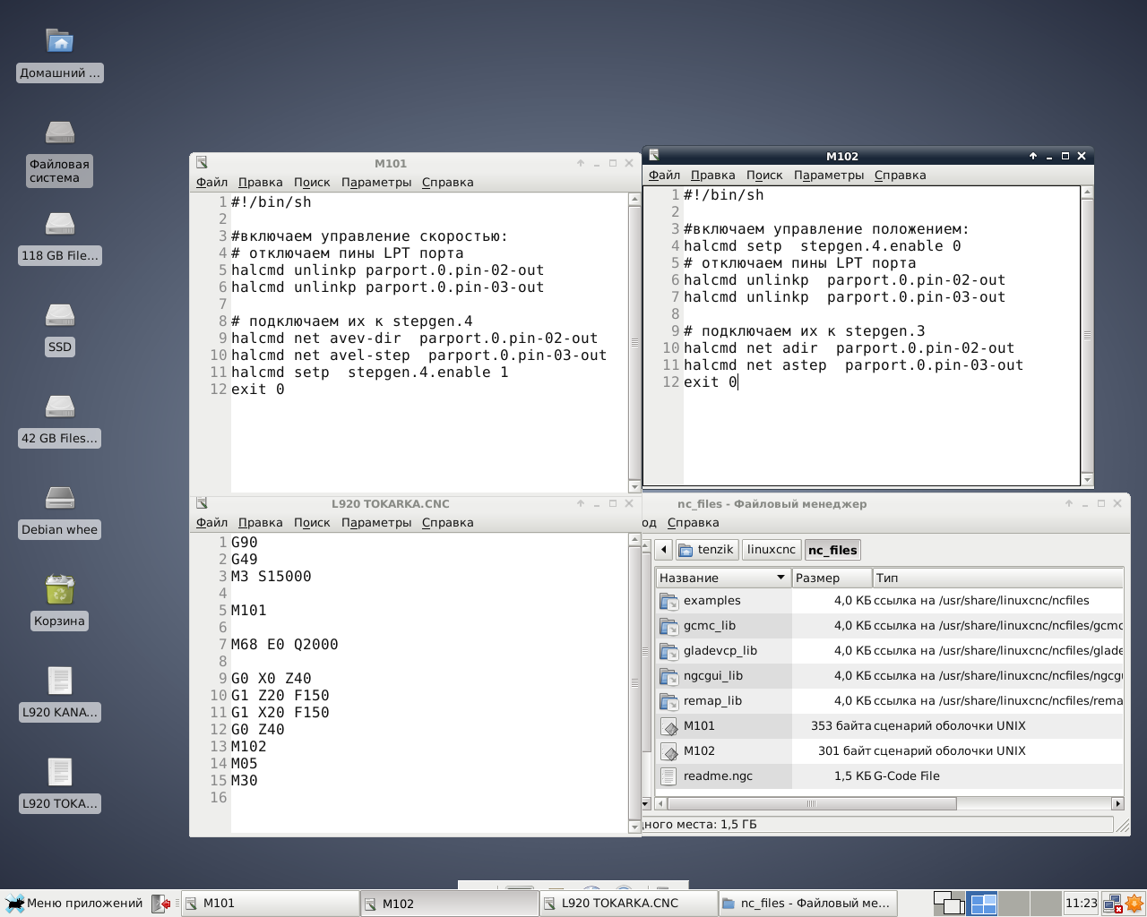 и наверное М( английское в названии файла и задании команды МДИ ) М101 и М102 надо писать МДИ командах по Ф5 в запущенном LinuxCNC