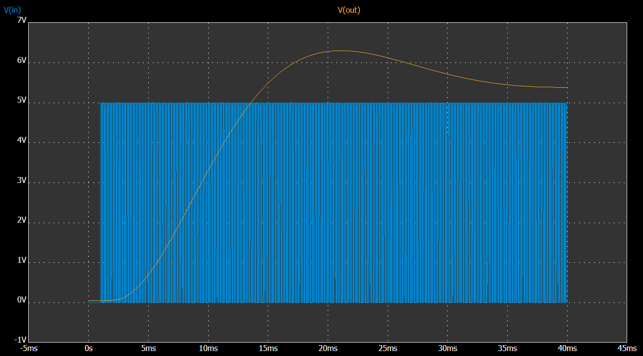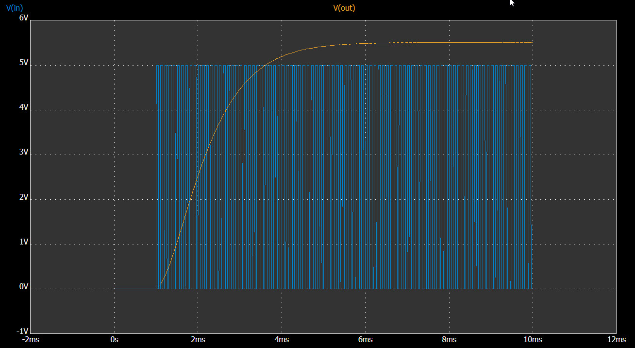 Проверил :) При скважности 50% получается примерно также как у меня. Симулятор, еси чё, от easyeda.