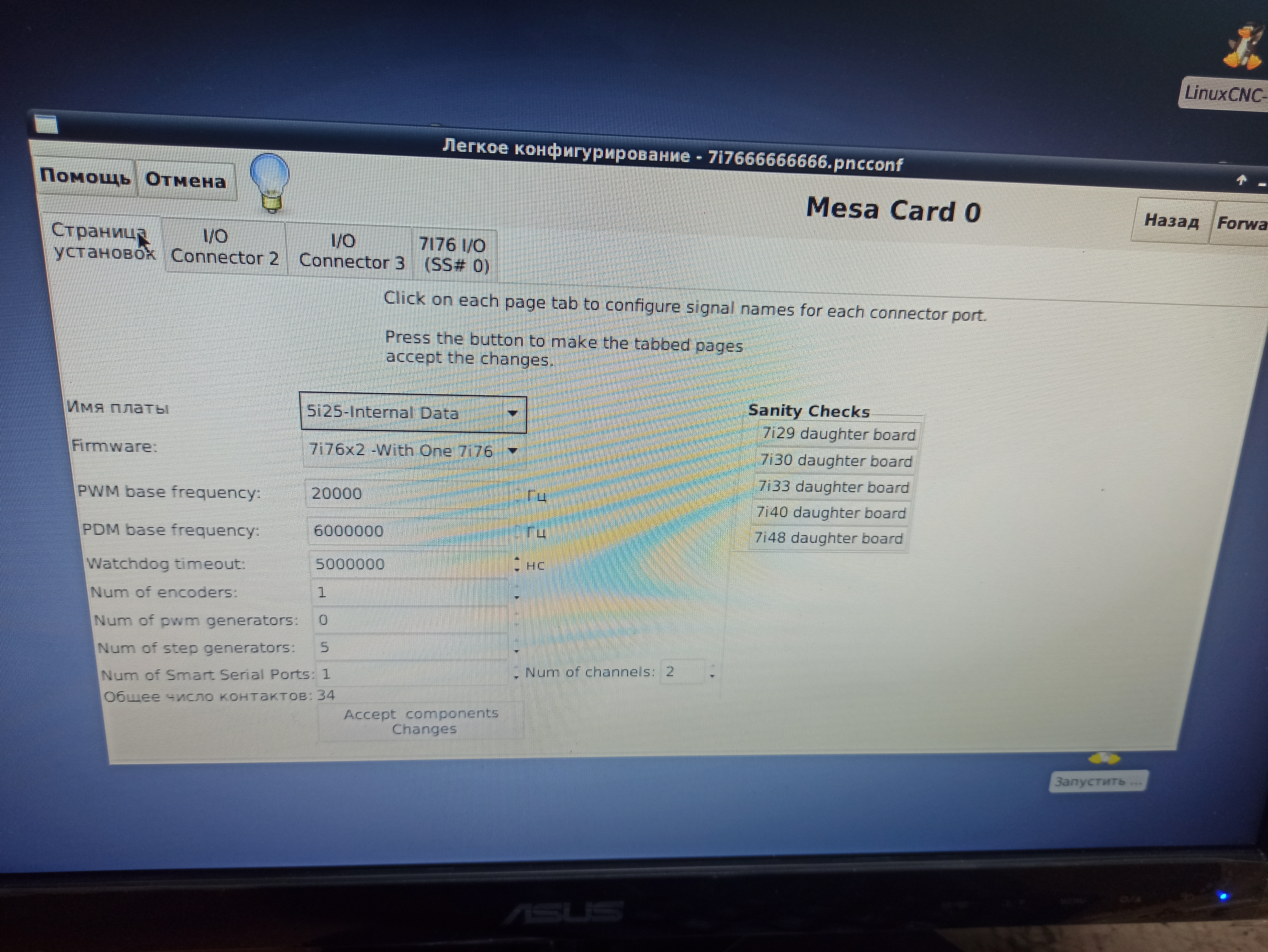 Тема заезженная, но не получается подключить плату 7i76 к 5i25. Форумы читал, перемычки менял...как я понимаю, просто 5i25 не обнаруживает 7i77.