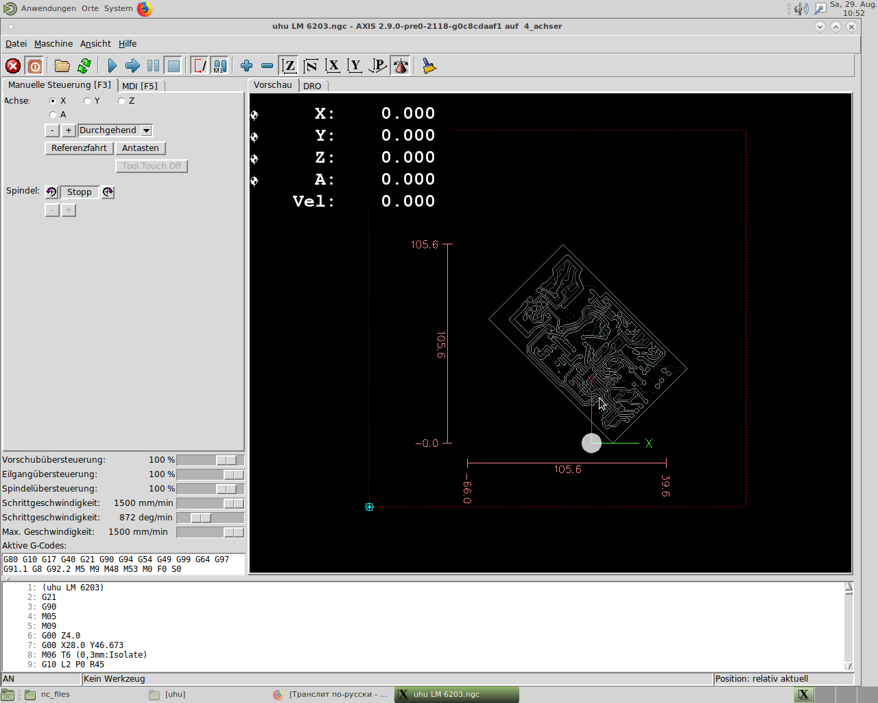 Никак не получается выставить на 0. Может с УП, что-то не так или я не умею пользоваться LinuxCNC.