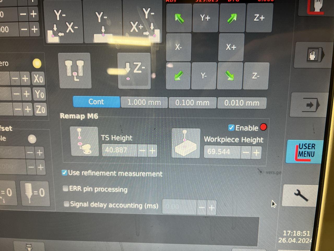 Нашел ошибку - при наружном измерении по одному направлению при нажатии Х- щуп опускается, производит замер, отъезжает и все - не поднимаается вверх, не обнуляет координату даже при активной автозеро. При трех других измерениях все норм, во вложении 2 снимка экрана для Х+ и Х-