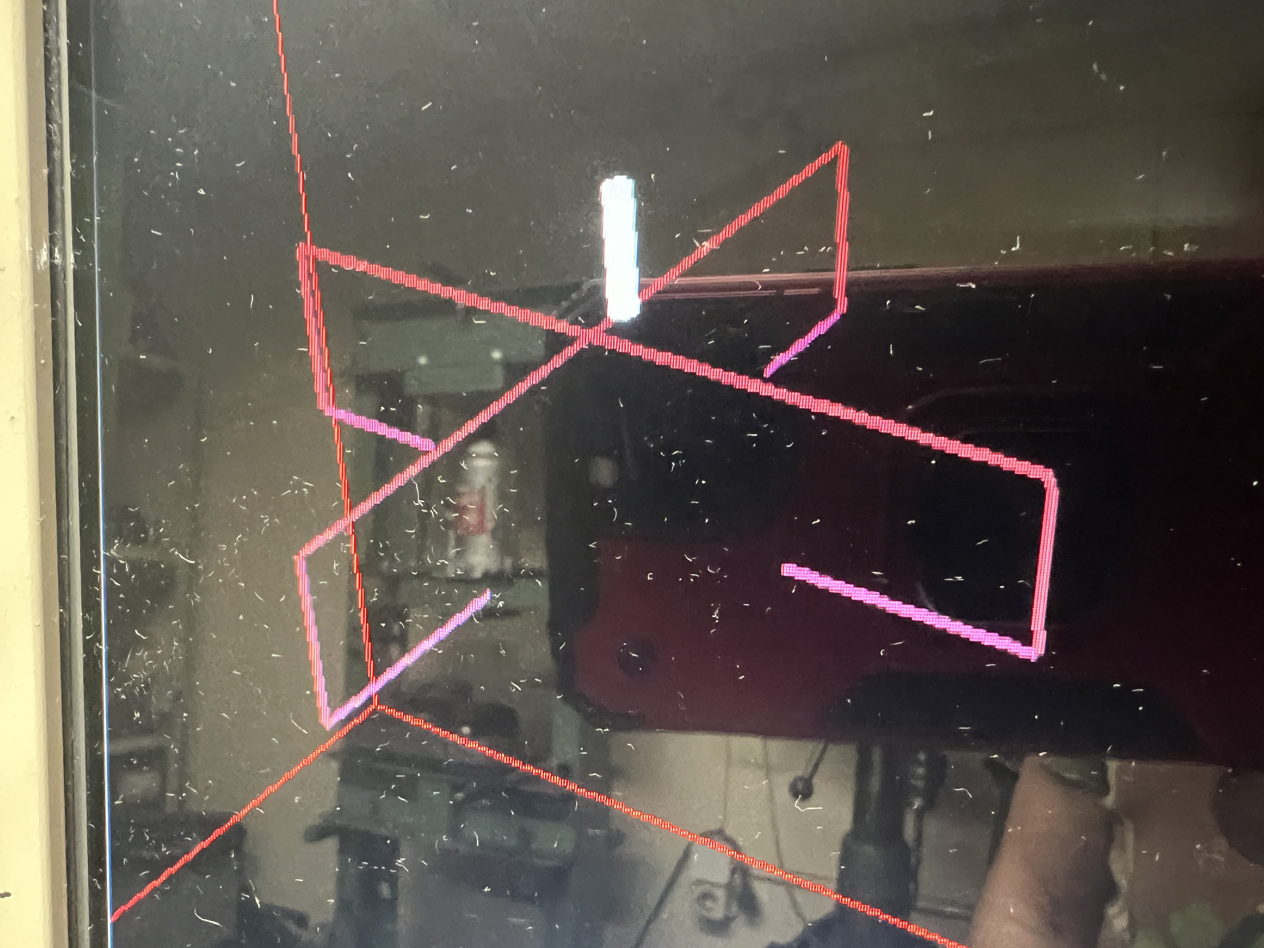 Сегодня скачал обновление - оно полностью неработоспособно. Я даже не знаю, как объяснить поведение словами, могу скинуть видео в вацап. Фото внешнего обмера с указанными параметрами - щуп делает только одно касание по Х+, дальше катается сам, меняя высоту при смене направлений. Для наглядности фото траекторий внешнего обмера заготовки новой и старой версий
