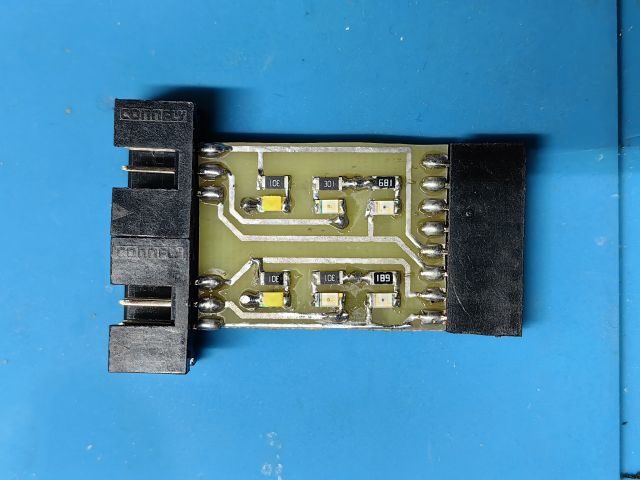 Была изготовленна плата дополнительного питания 3.3в. которая подлючается в любой разъем J9-16 и подает питание на Pin 13,15 и на буферные микросхемы.Теперь для белопасности можно отключить входы при перепрошивке. К Pin 13,15 - 3.3в. и 4,16 - GND подключается входная опторазвязка.