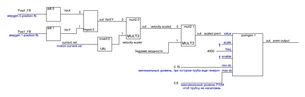 конфигурация сыровата, был косячок с присвоением имен, явно лишний элемент pwmgen, кривоватые индикаторы в pyvcp и т.п.