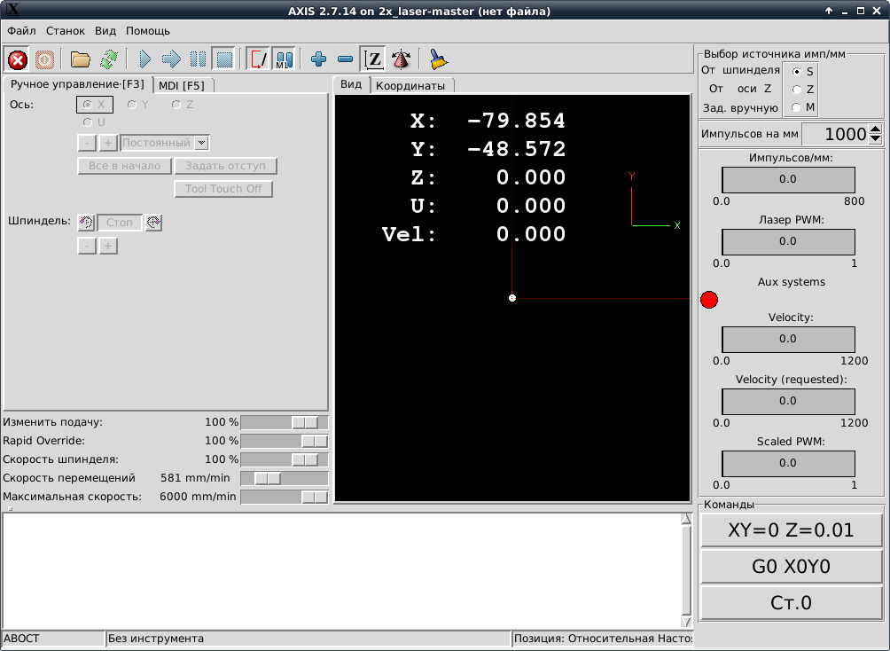 - ось Z. Управление лазером. Z<0 включает лазер. Обеспечивает хорошую совместимость с САМ