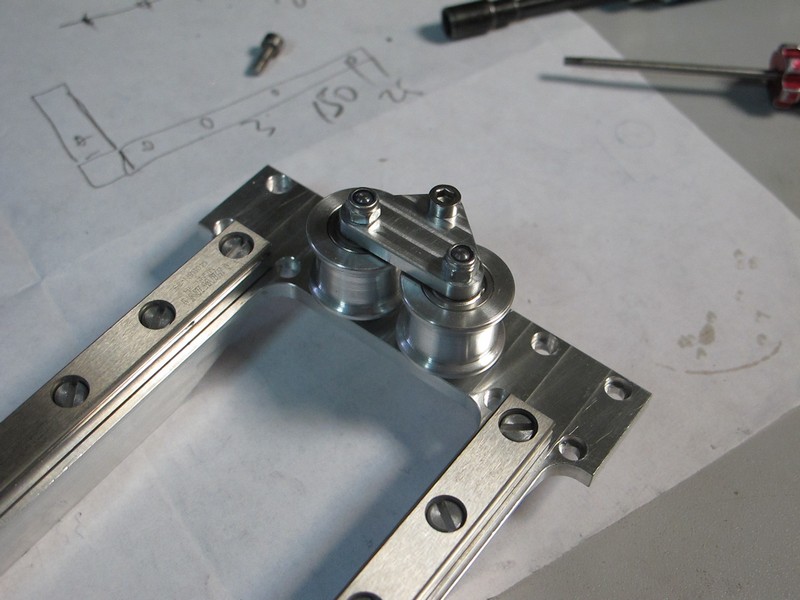 Крепление роликов немного изменил, заместо болтов выточил оськи , вкрутил в каретку на М3