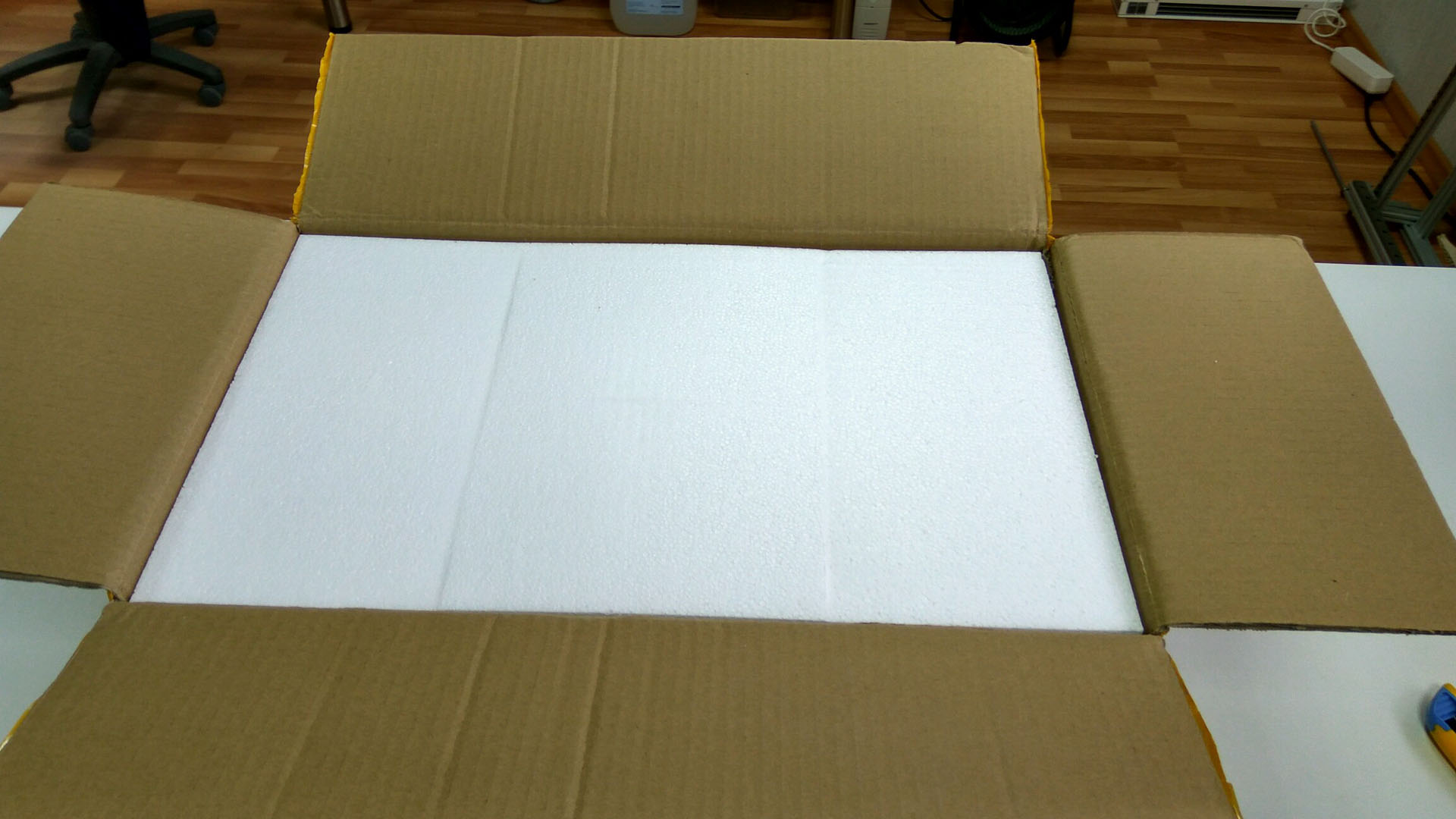 В коробке как в пироге - слоями, каждый слой в своем пенопластовом поддоне, верхний слой прикрыт пенопластом: