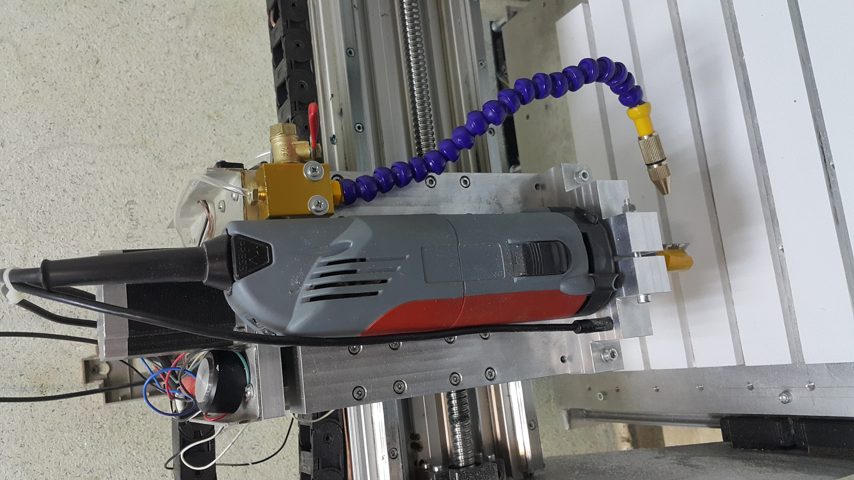 я все таки сначала рисовал, а потом уже заказывал. таким образом получилось сэкономить на стоимости принтера, хотя и так выходит не маленькой. Я сейчас в активной фазе изготовления деталек из д16т. Обновил немного свой станок, усилил кронштейн шпинделя и добавил СОЖ туман. Сегодня протестил, дует и брызгает хорошо