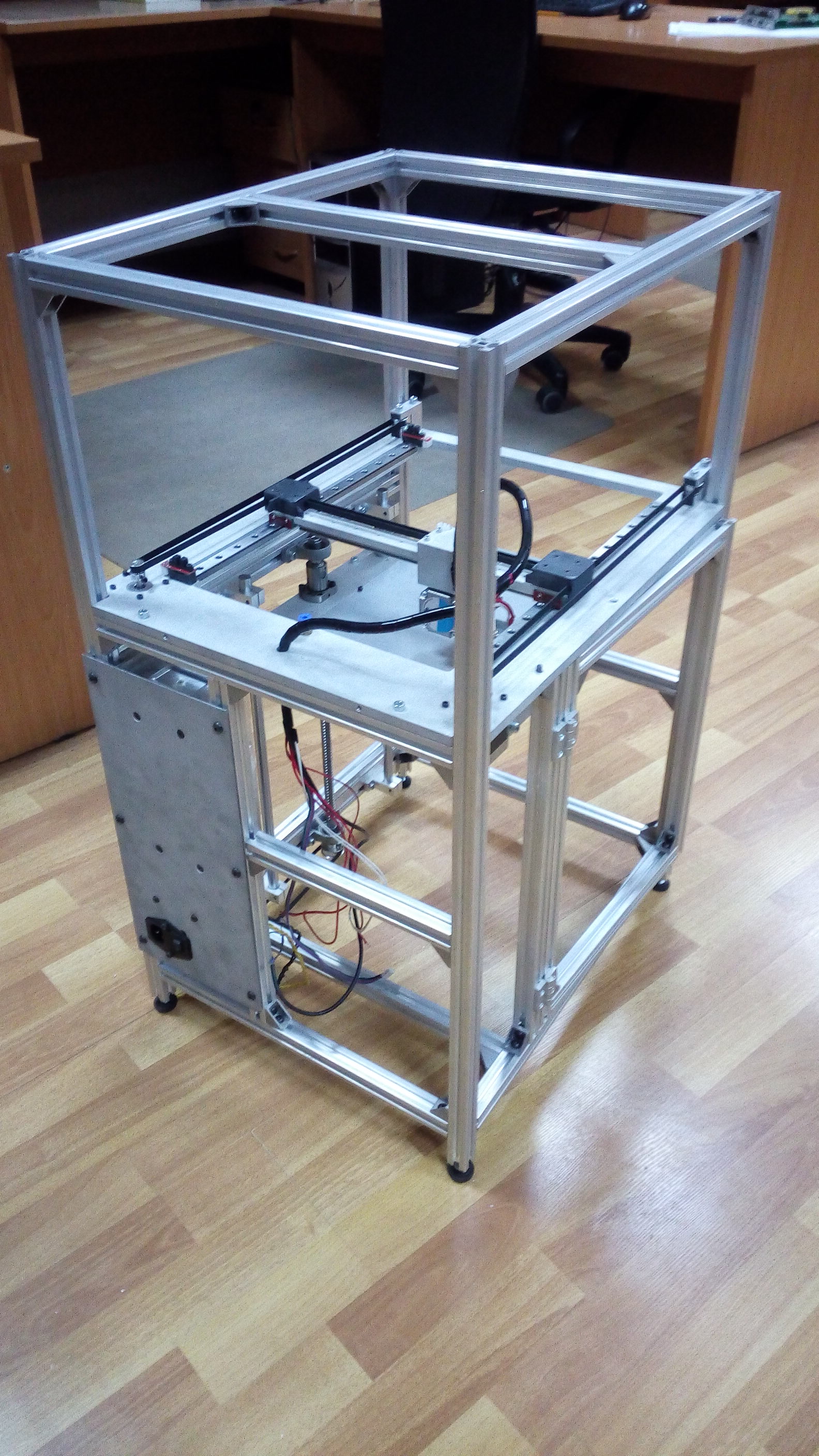 На базе профиля 20х20, основание под оси X/Y - 10мм плита Д16.