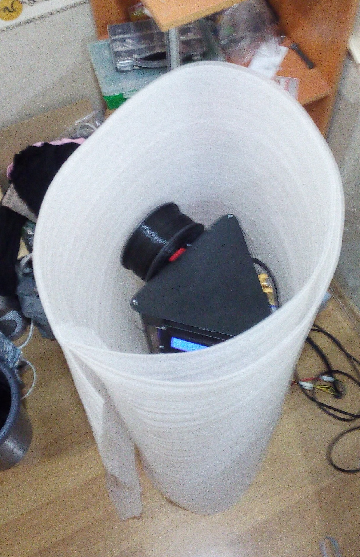 Не нравится мне, что внутри принтера "жарится" его БП (15В/400Вт), потому нужно думать, как сделать для него индивидуальную продувку (каналы вдува и выдува воздуха), дабы не выдувать изнутри драгоценный жар. Пока что БП спасает большая плита, к которой он прикручен, плита "смотрит на улицу".
