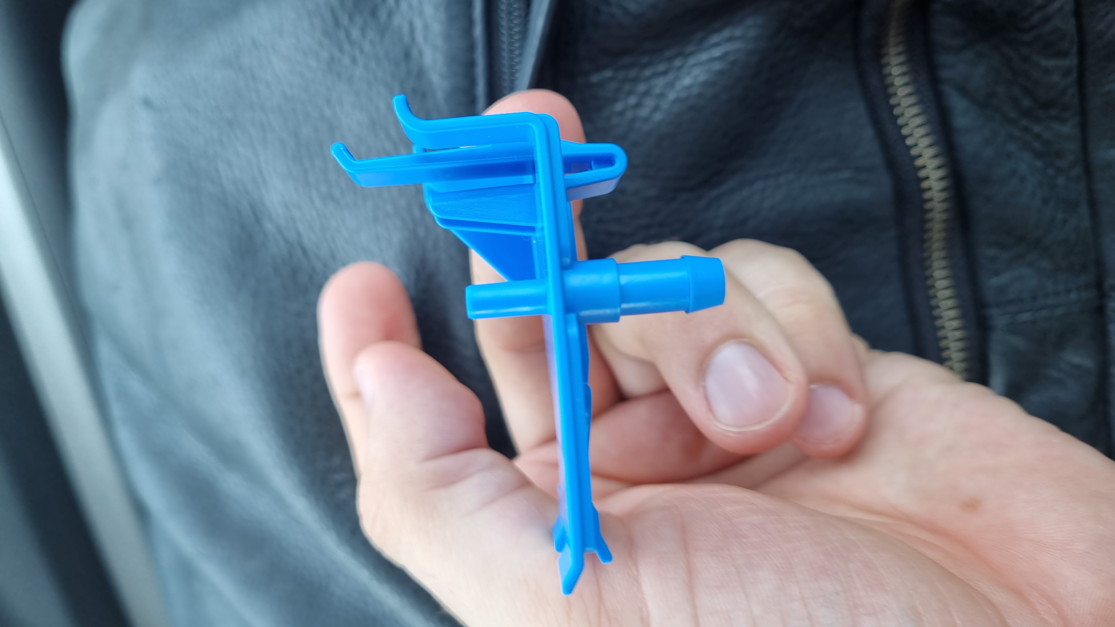 Судя по фото изделия, на месте ТС я уже бы давно в напечатанной крышке с защелкой просверлил бы отверстие и вкрутил бы два латунных шланговые штуцера друг в друга с двух сторон или нашел и поставил бы один двойной штуцер с внешней резьбой на двух гайках, благо этого добра разного калибра в любом сантехническом отделе навалом...