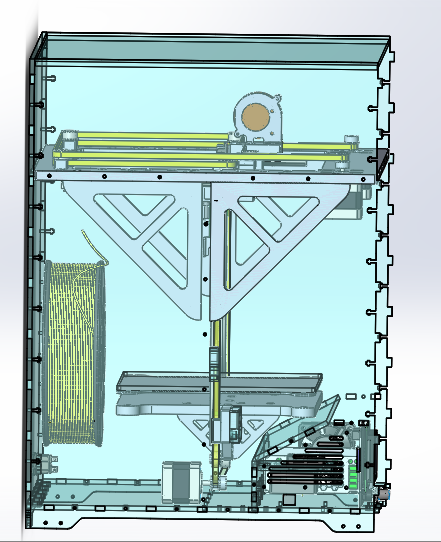 Вообщем, понял что принтер печатает сразу после сборки и решил по фасту его доделать до красивого вида и не распыляться на всякие временные конструкции, вообщем ща экстренно дорисовываю корпус чтоб отдать файлики на лазерную резку. Где я тружусь лазера нет, посему тут уже непрокатит ошибаться(либо потом напильником дорабатывать - чего очень нехочется за лазером делать, ибо лазер ну очень красивые края оставляет).