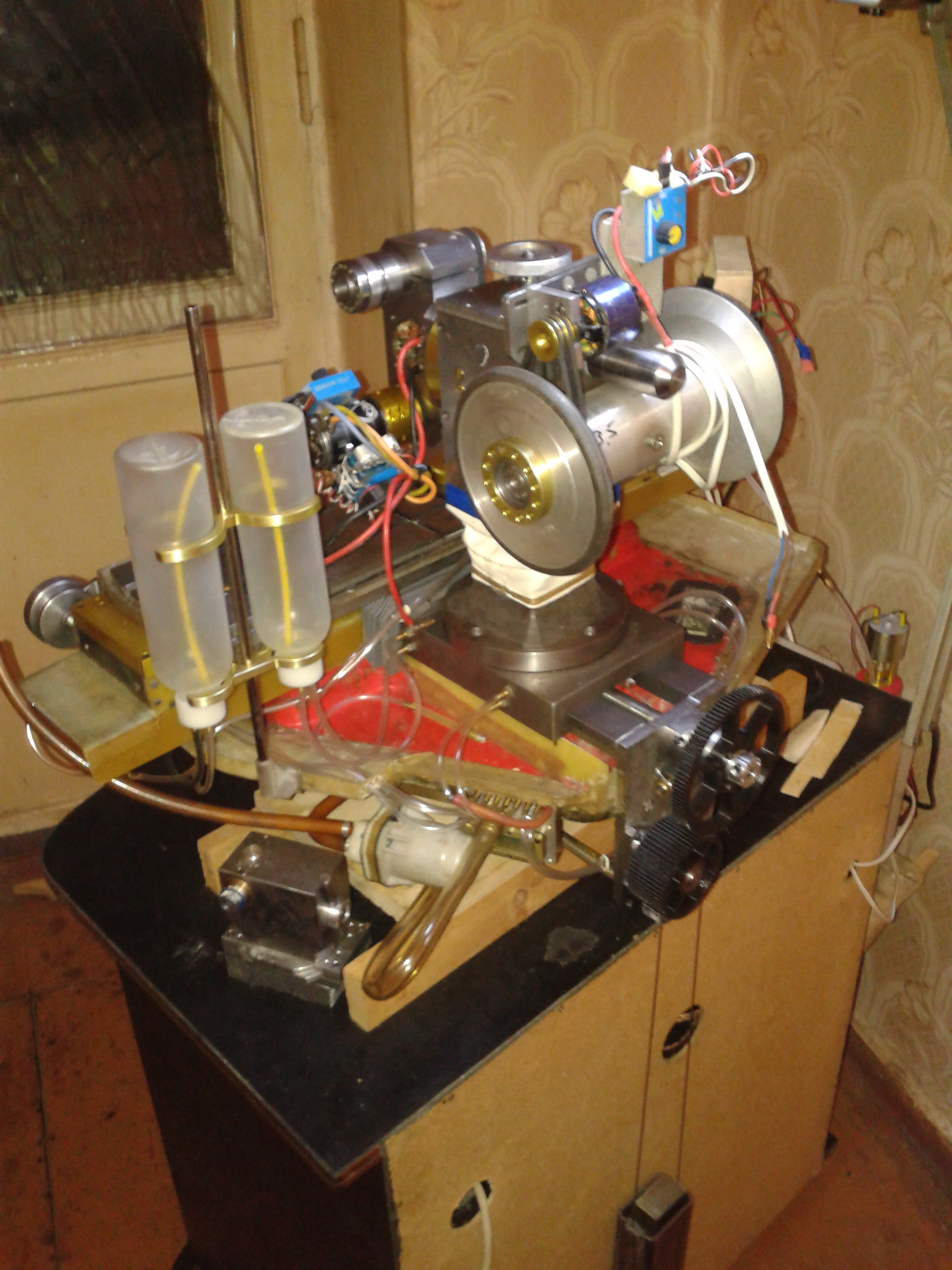 Занимаюсь внутренней шлифовкой. Охлаждение ,штуцера под смазку,муфта привода и переходник на моторчик готовы.
