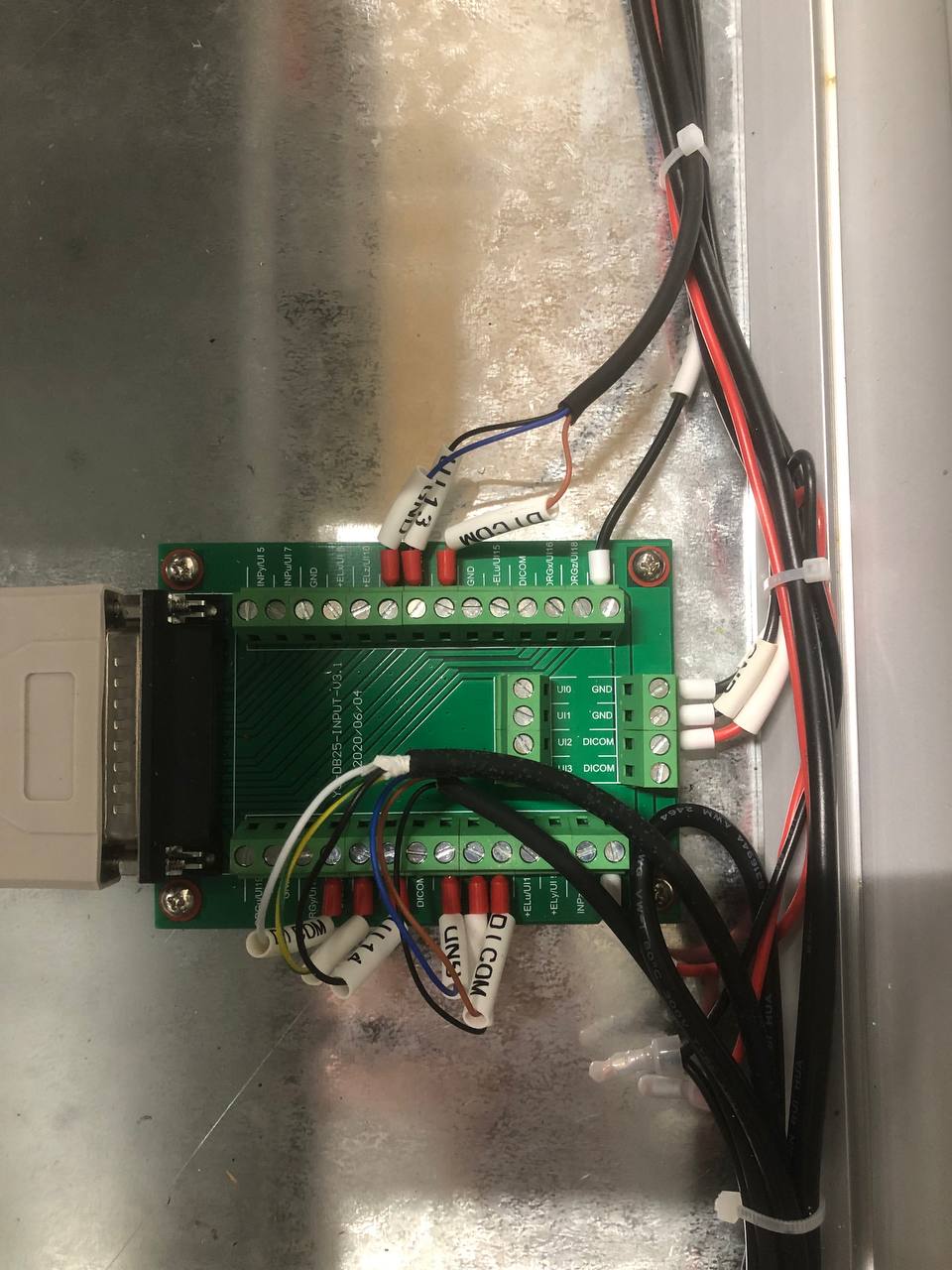 А вход который сзади станка, имеет всего 3 провода: RX,TX, земля. То есть стандартный RS232.
