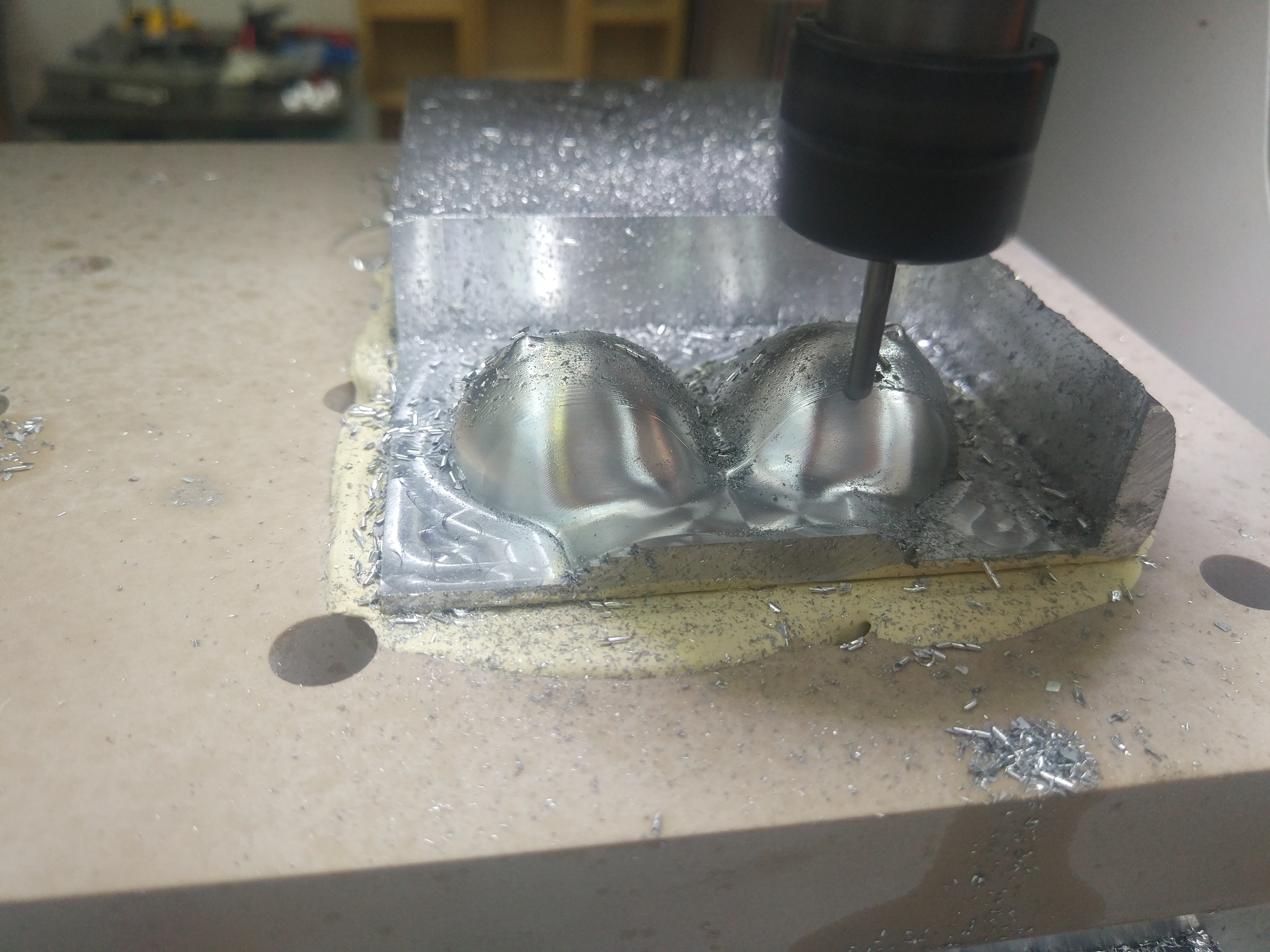 Механику собирал Евгений http://www.cnc-logic.ru В планах сделать основание для станка и до оснастить системой подачи СОЖ. Электроника самая не дорогая. Микро шаг 1/16, питание моторов 36V. В планах поменять драйвера и поднять питание до 48V. При обработке применялись новые фрезы 1. черновая KB3LX622 http://www.gravman.ru/tools_3_5.htm 2. чистовая KB3QX43012 http://www.gravman.ru/tools_4_13.htm