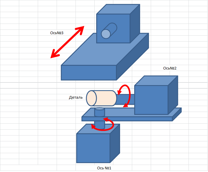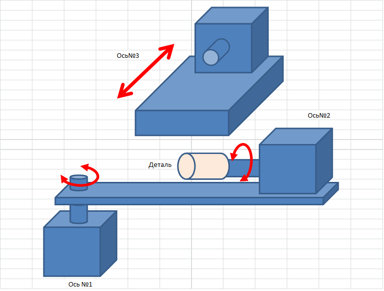 Трехосевая схема (две поворотный. одна линейная)
