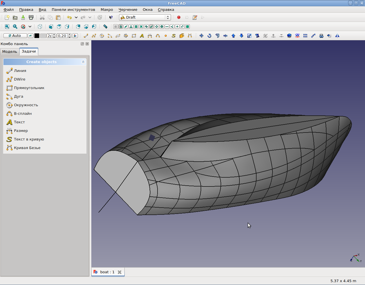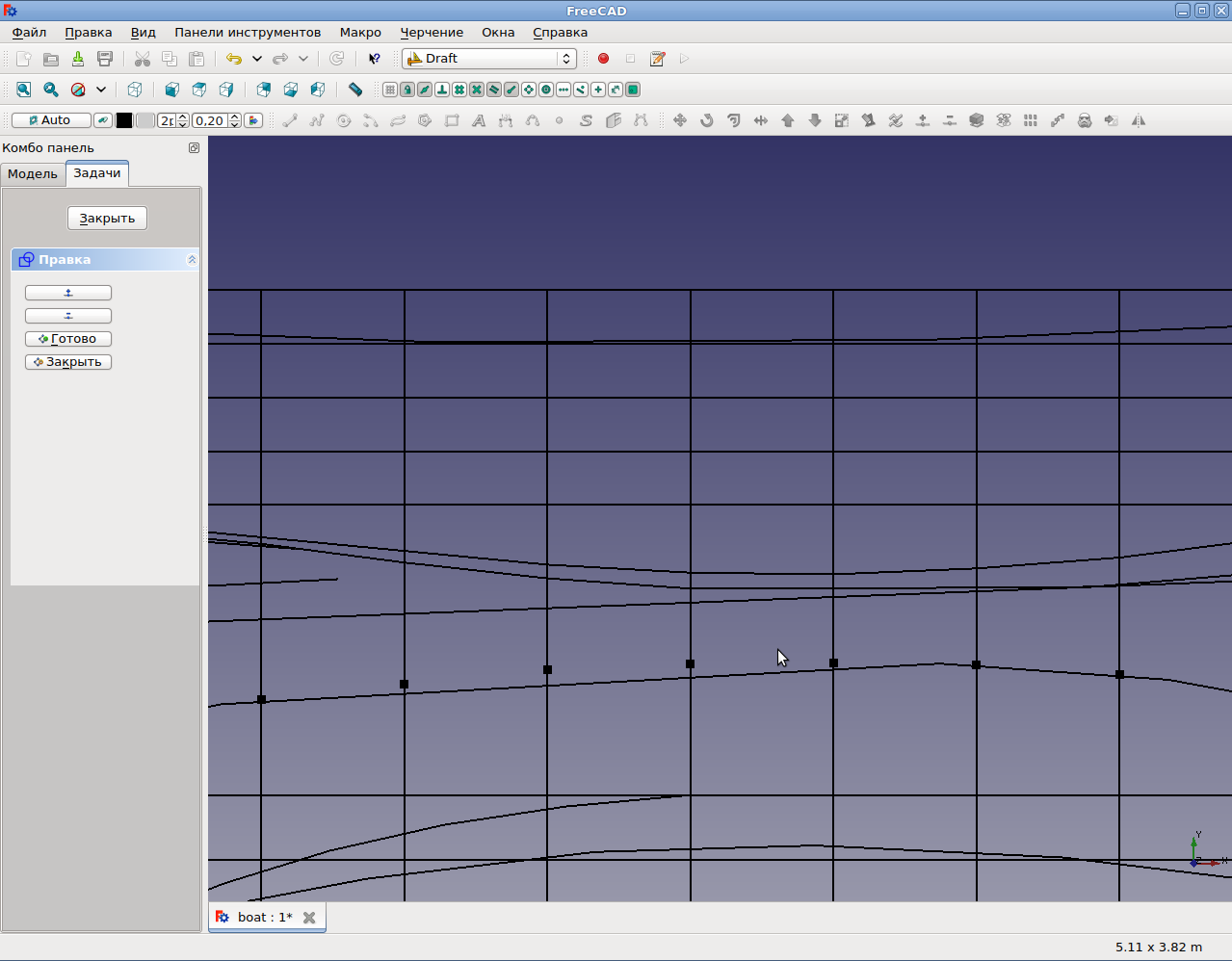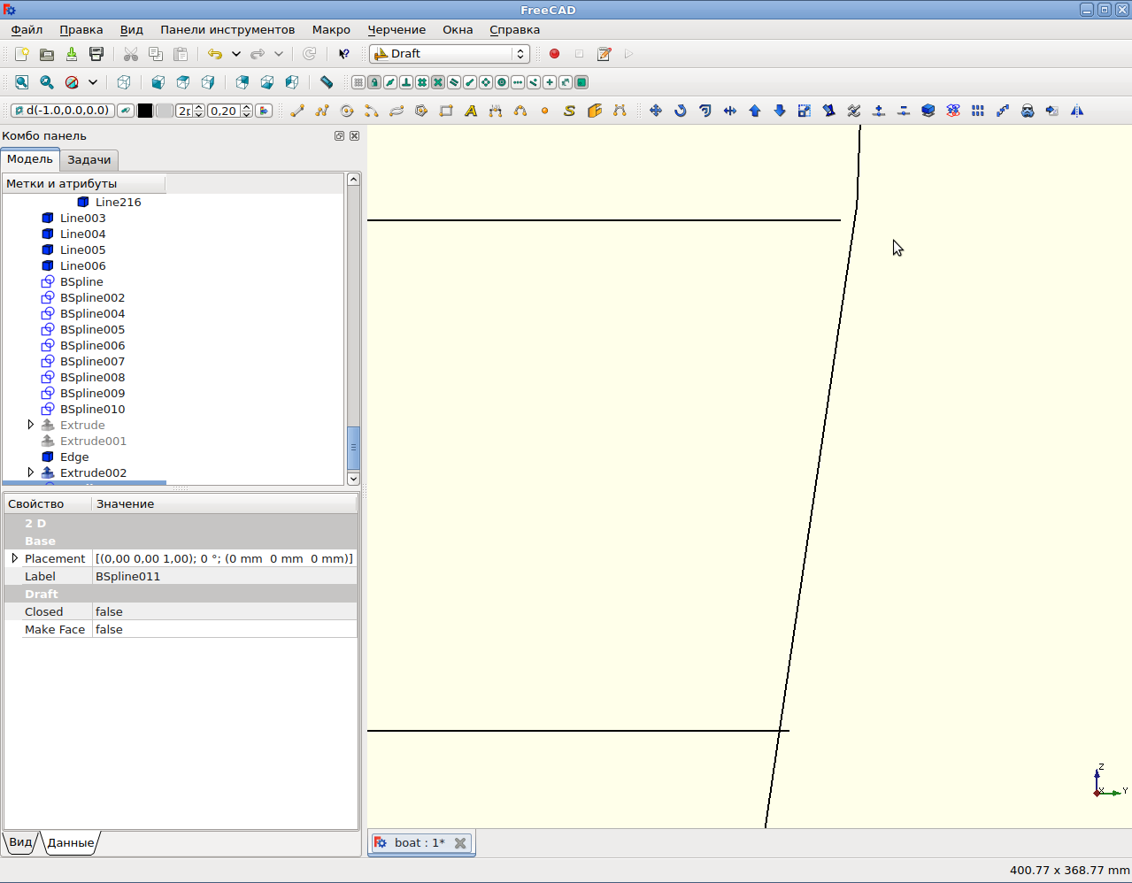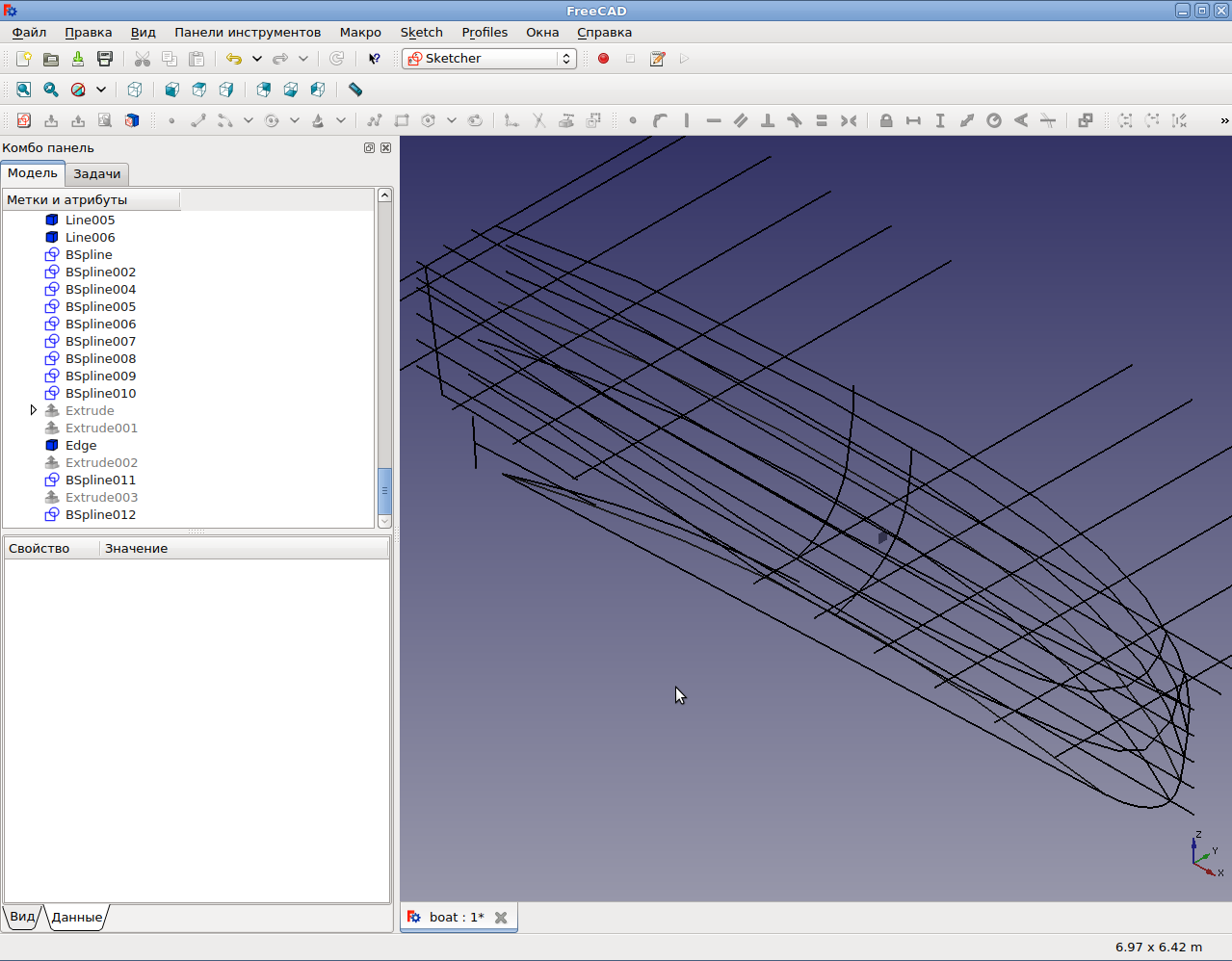 Вобщем не получилось фрикадом решить простенькую задачу рисования парохода. Скетчер со сплайнами работать не умеет, сам фрикад не умеет их визуализировать и обеспечивать нормальный доступ к точкам.