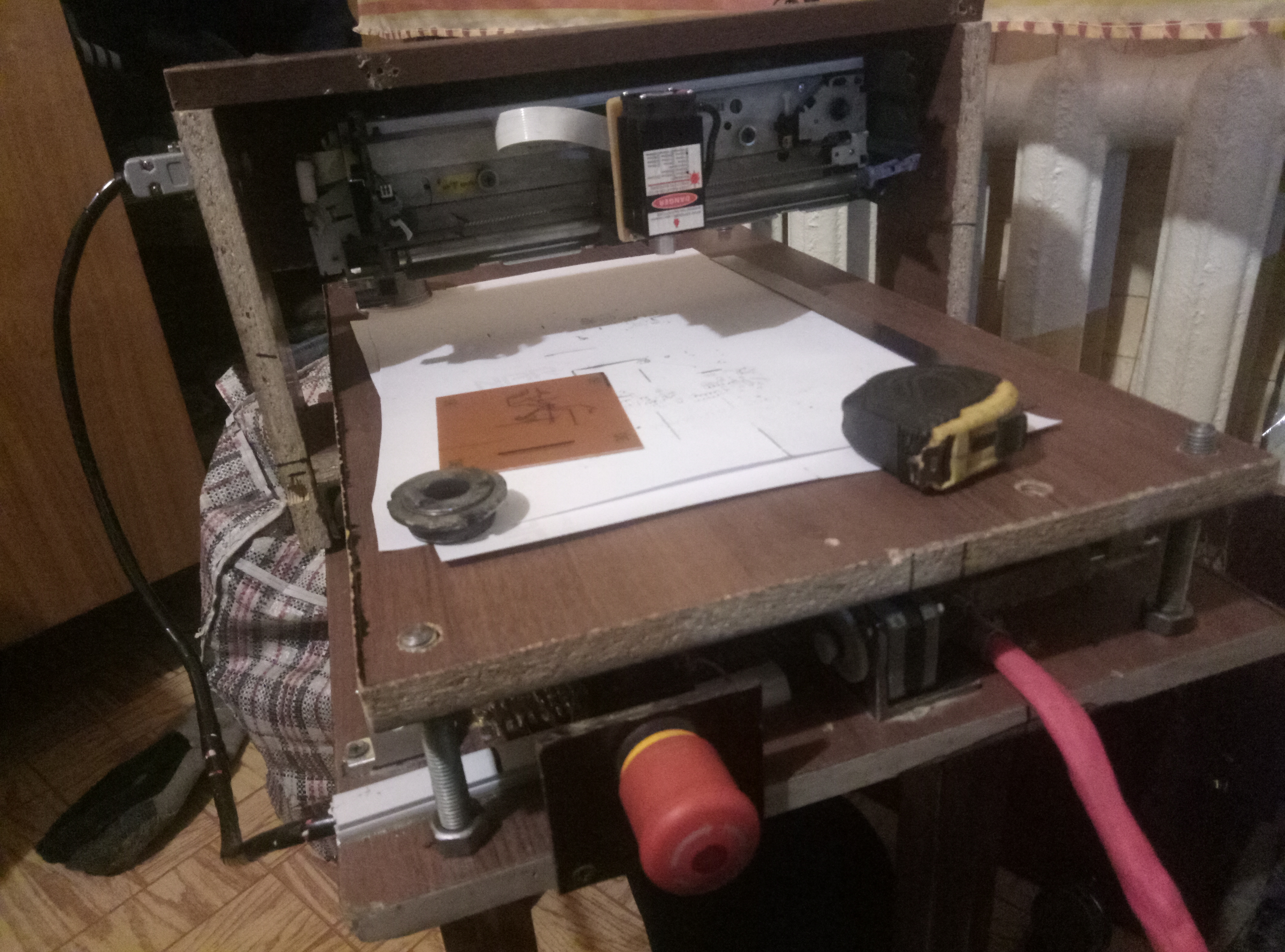 Пробовал засвечивать фоторезист один раз, результат получился отвратительный, засвечивались обширные области да и время обработки большое. В G-Code мощность лазера была 100% и я считаю что отраженные от меди фотоны засвечивали все подряд. дальше еще попробую с меньшей мощностью думаю нужно ставить диафрагму перед платой, потому что оптика моя на лазере не идеально фокусирует луч.