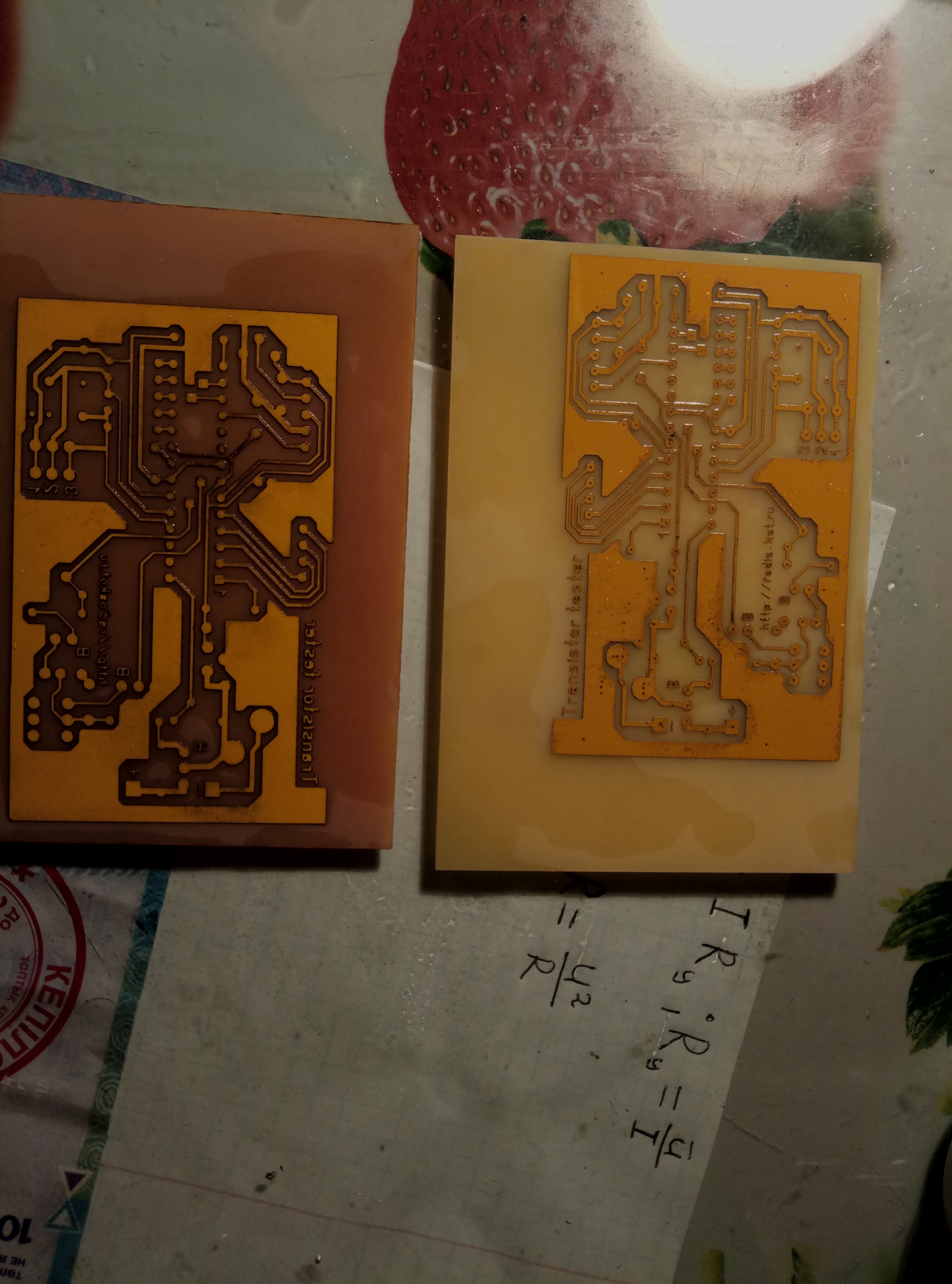 после соды часть дорожек слезли т.к. при превышении мощности фоторезист сжигался, а не засвечивался
