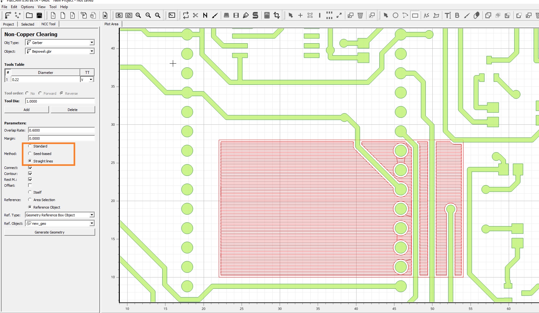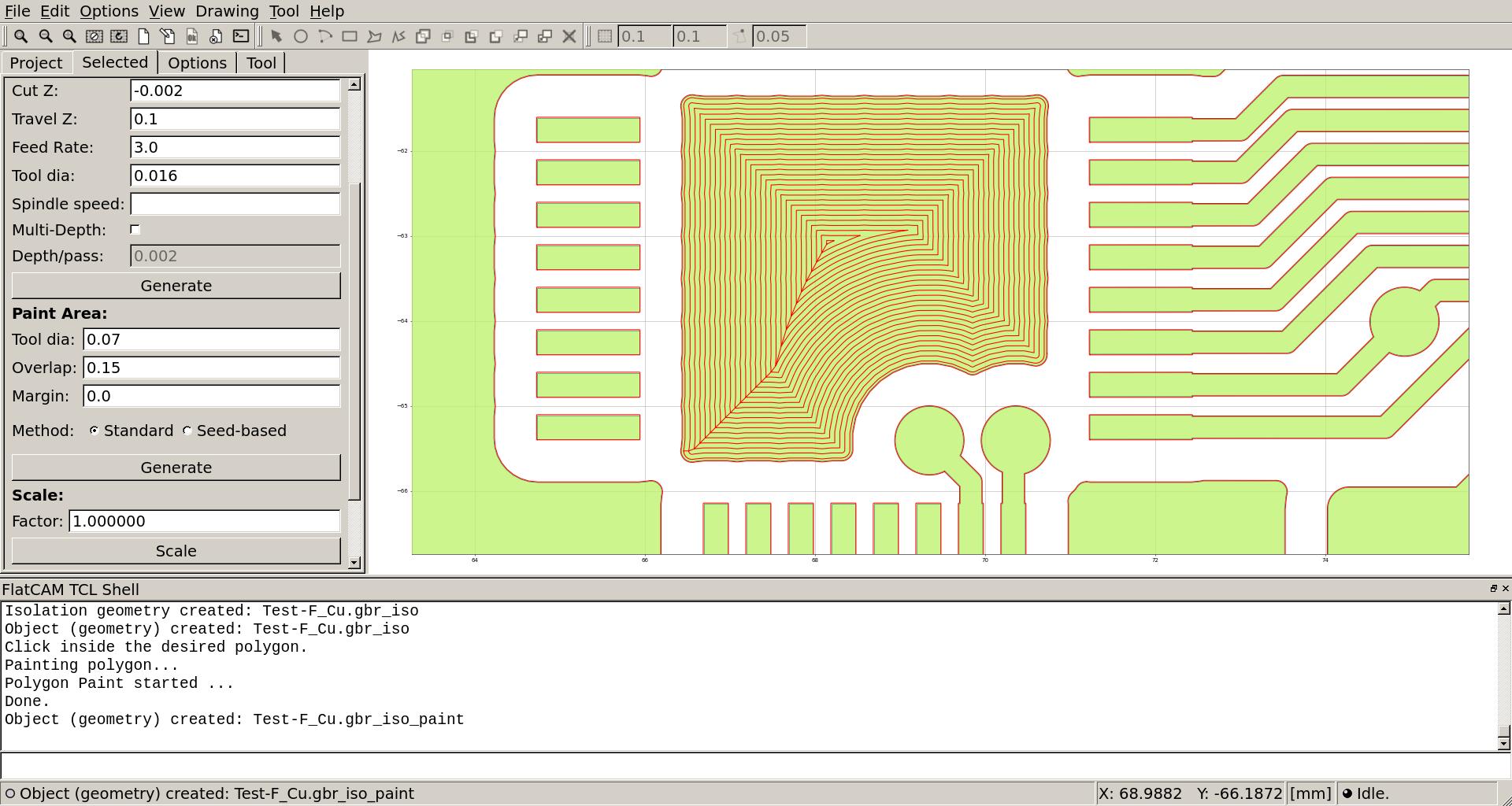 Подскажите, что-то не нашел в FlatCAM такой возможности... Импортирую grb файл платы. Можно ли "заливку" (опция Paint Area) сделать таким образом, чтобы движение происходило по прямым слева направо например и обратно, а не по окружностям?