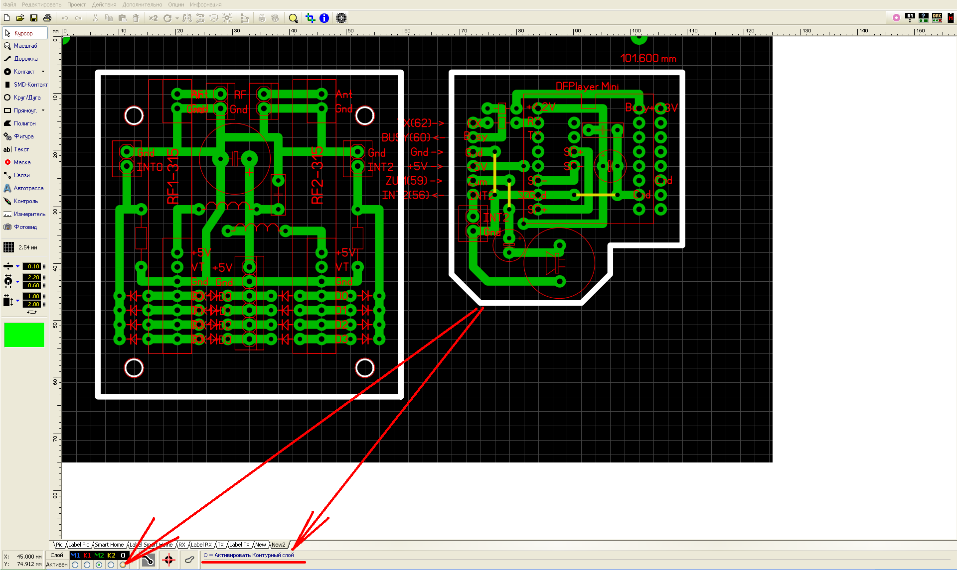 Так в Layout-e какой нарисуешь контур, такой и получишь, хоть волнистый, хоть змейкой, хоть зигзагом. Используй белый слой контураLecter писал(а):И еще вопрос, возможно ли контур платы делать фигурным а не просто квадрат или прямоугольник?