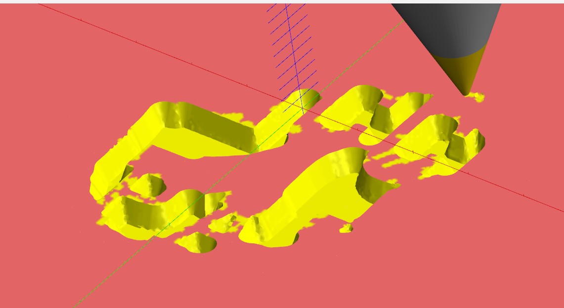Это тоже вариант. Но получается что придется делать примерно так: Черновая обработка, основную часть метала (вокруг значка) снимаем 3мм фрезой, потом еще часть, та что вокруг букв, например 1 мм фрезой, потом еще 0.5 мм фрезой, потом 0.2 гравером, потому что он хоть как то залазит в буквы, а потом уже допиливать 0.1 гравером. Тогда да, тогда скорее всего не будет особых проблем. Но и то, совсем не факт что 0.2 гравер залезет везде и прям нигде нигде не оставит не убранного места. Вполне может быть нетронутая высота...