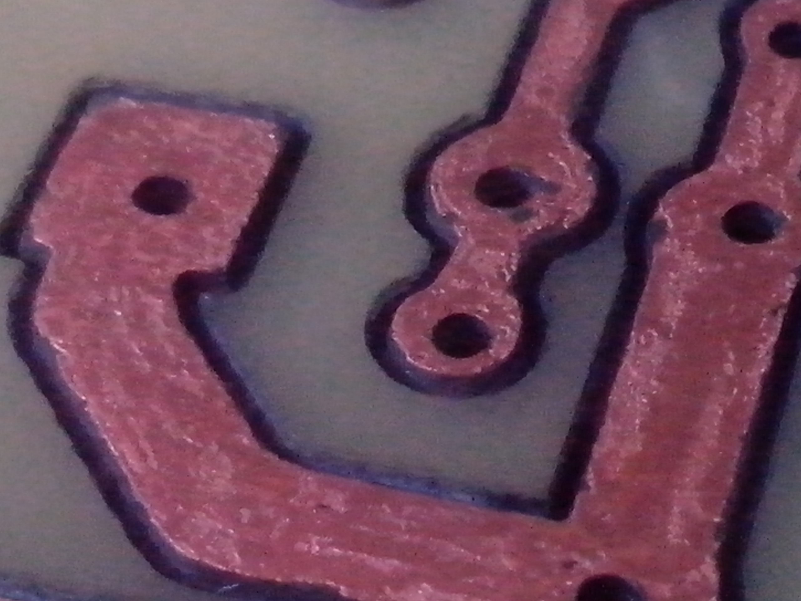 Не надо так - доведите или один способ или другой до качественного результата если это, конечно, не последняя плата, которую собрались делать (если бы мне все равно пришлось совать плату в жидкость - я бы на станке только сверлил, необходимость что то куда то наливать/травить, промывать и т.д. почти лишает смысла фрезерование т.к. полностью ЛУТом должно получаться лишь немного хуже, а вся прелесть фрезерования - воткнул заготовку, пошумел, готово). Если нужна плата на которой только немного дорожек и нет меди - лучше и быстрее ЛУТ, но часто лишняя медь совсем не мешает и достаточно дорожки по контуру прорезать в несколько проходов с увеличивающимся отступом (sprintlayout - экспорт в .plt, задать N проходов со смещением 25-50% - stepcam).Mark 24.ru писал(а):Правда не весь лишний метал убирается - главное прорезать , а там Лут в помощь ( можно перманентным маркером закрасить наконец нужное ).