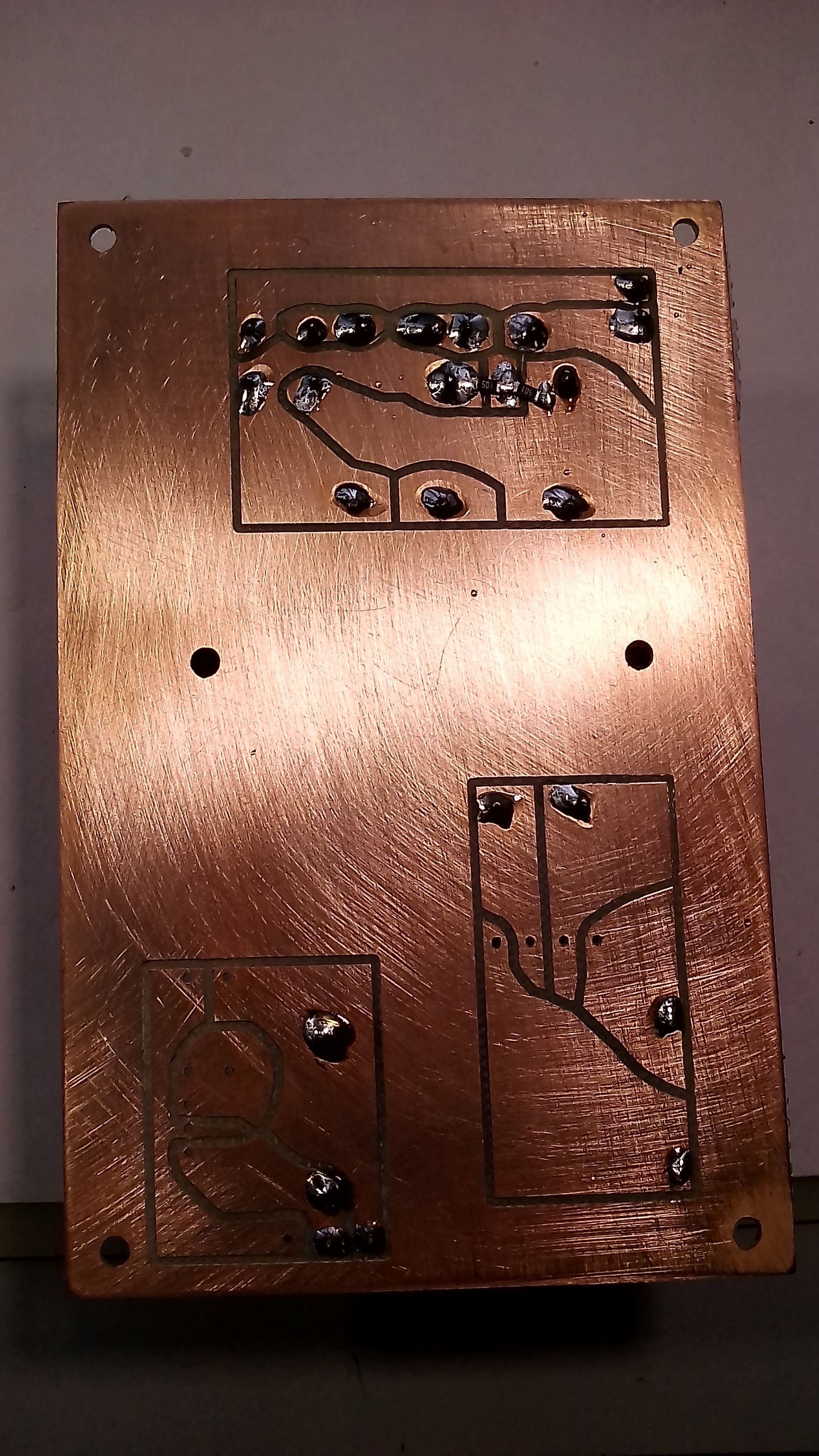 п.с. пока пришлось разделить сверловку и гравировку... сверловку готовлю в FlatCam, т.к есть возможность одним инструментом сделать отверстия разного размера... гравировку готовлю в G2G, т.к. в основном Вороной..