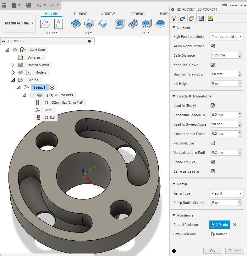 Но F360 не дает выбрать этот центр, т.к. на модели нет этого отверстия