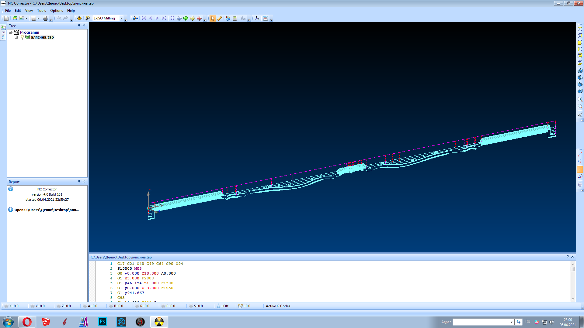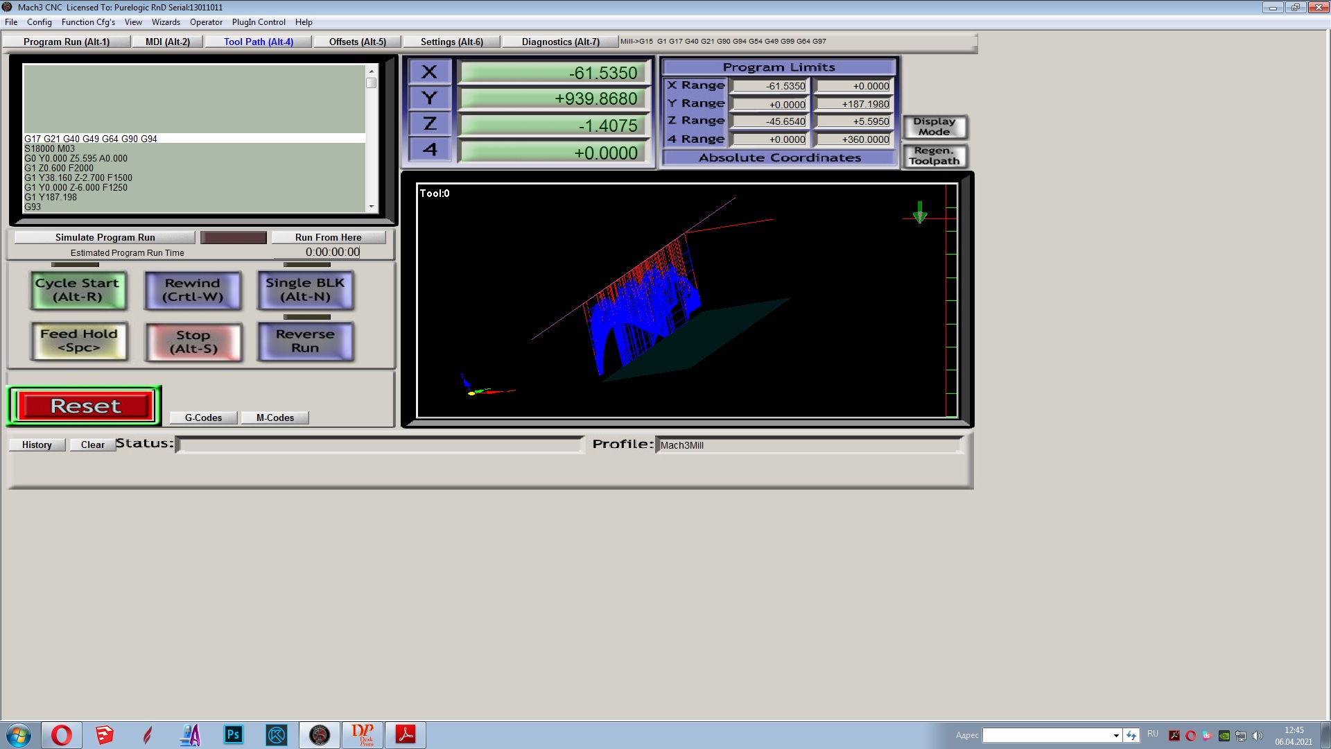 В общем загружаю прогу, показывает криво. Тыкаю regen toolpaph - показывает нормально. Мистика.