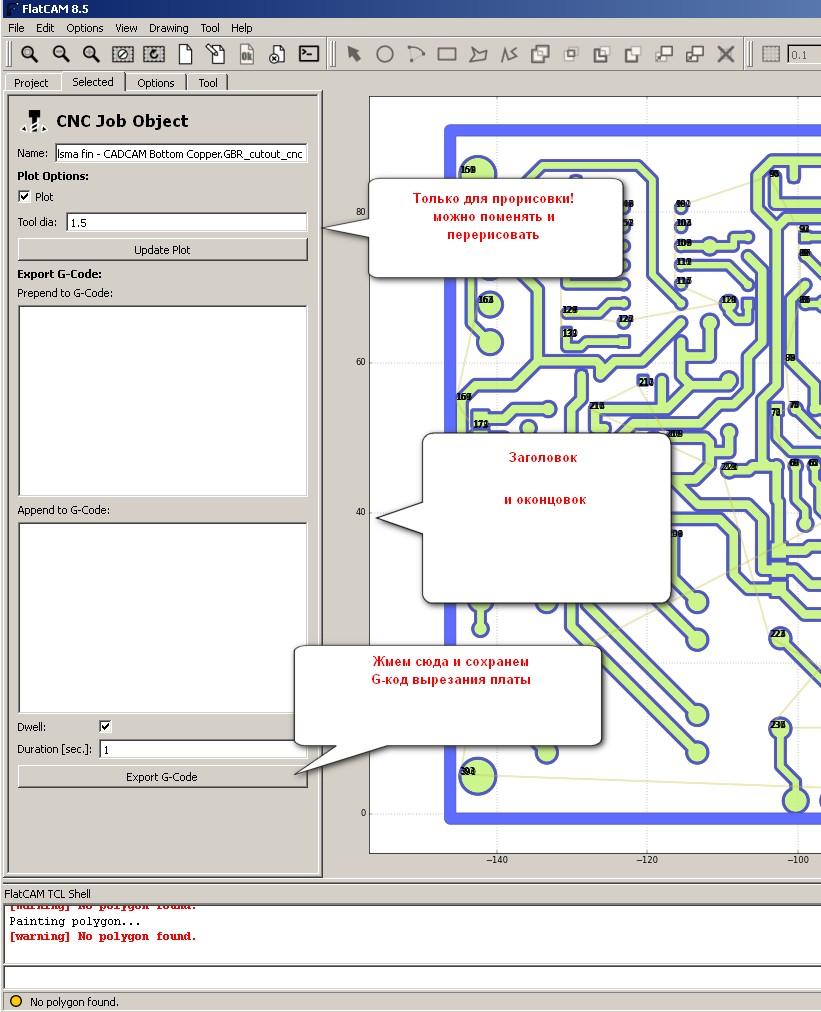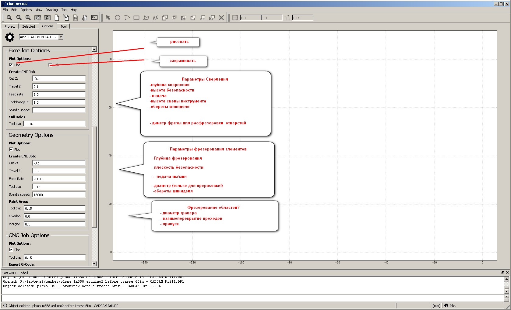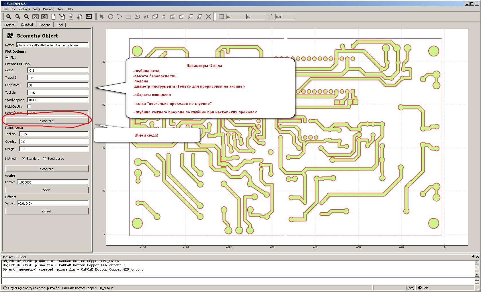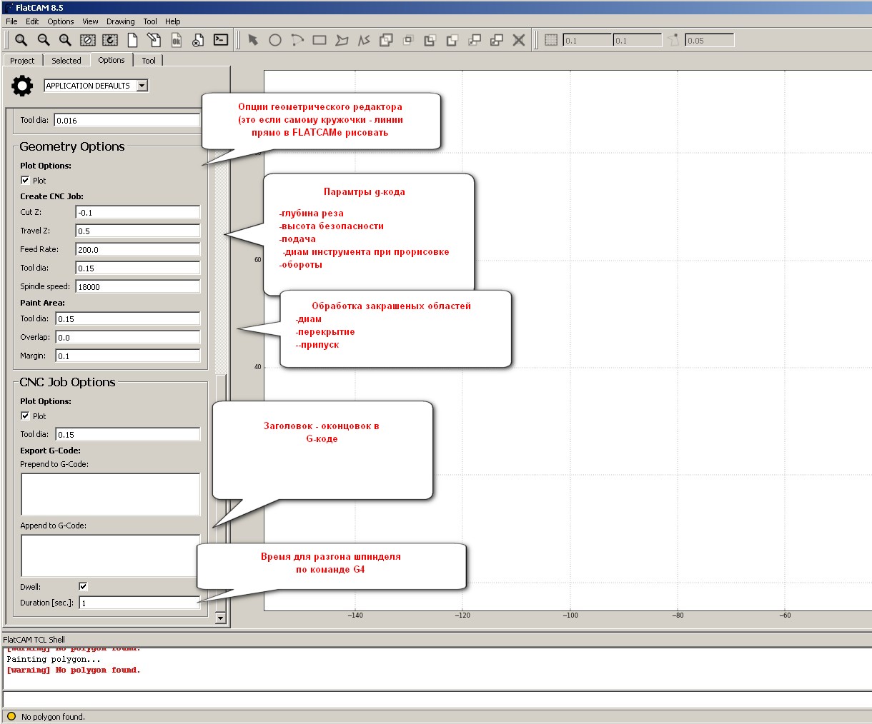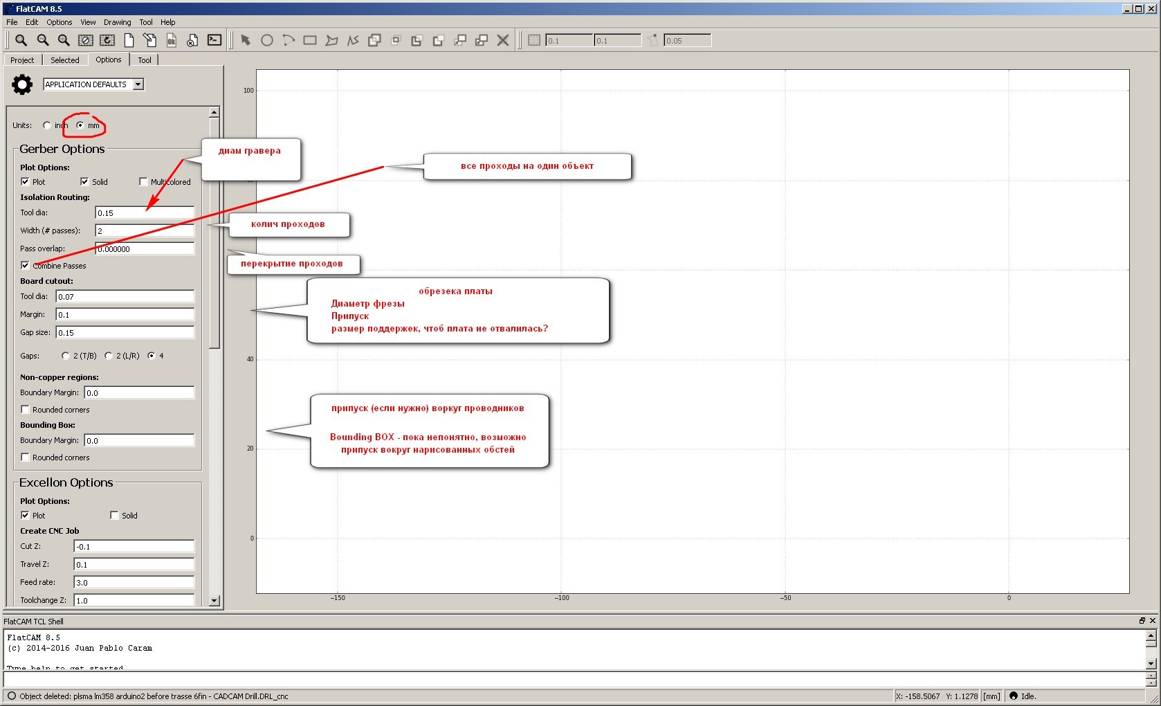 Внимание! чтоб параметры применились, лучше перезагрузить FLATCAM