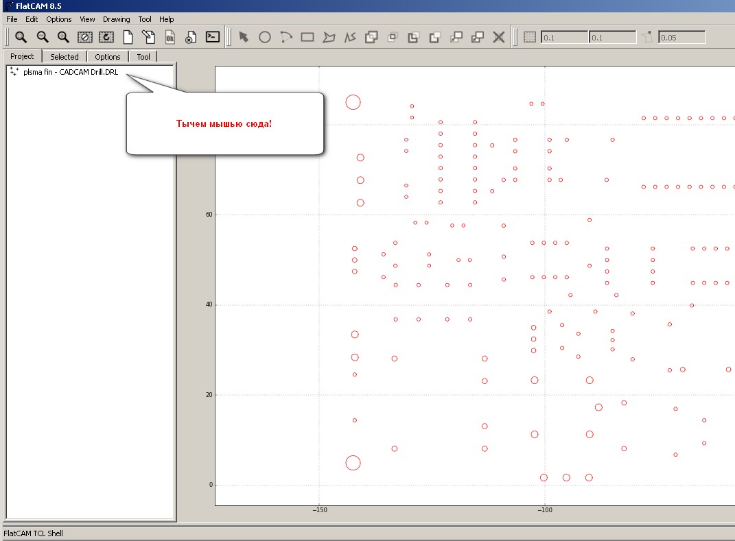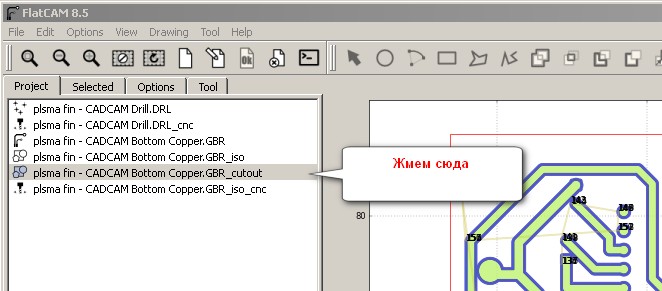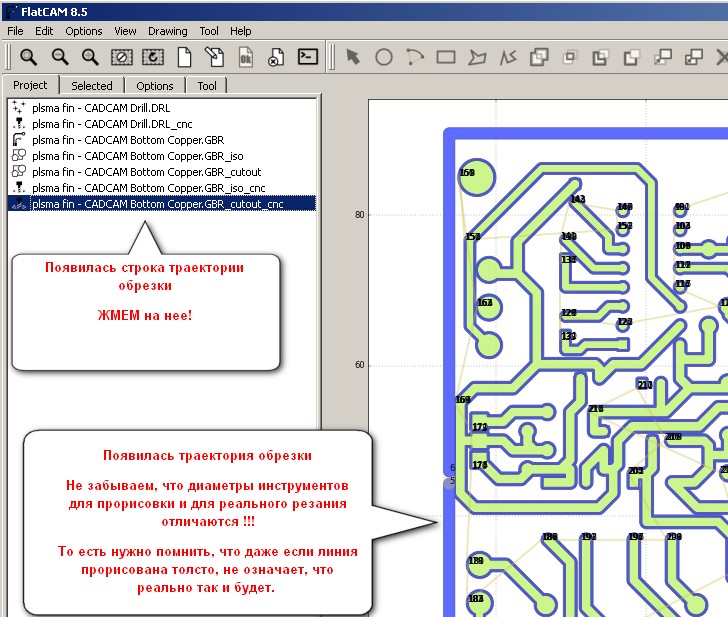 загрузим Gerber-файл теперь вырезание платы из заготовки В заключение, скажу, что меня постоянно вводили в заблуждение диаметры инструментов для прорисовки