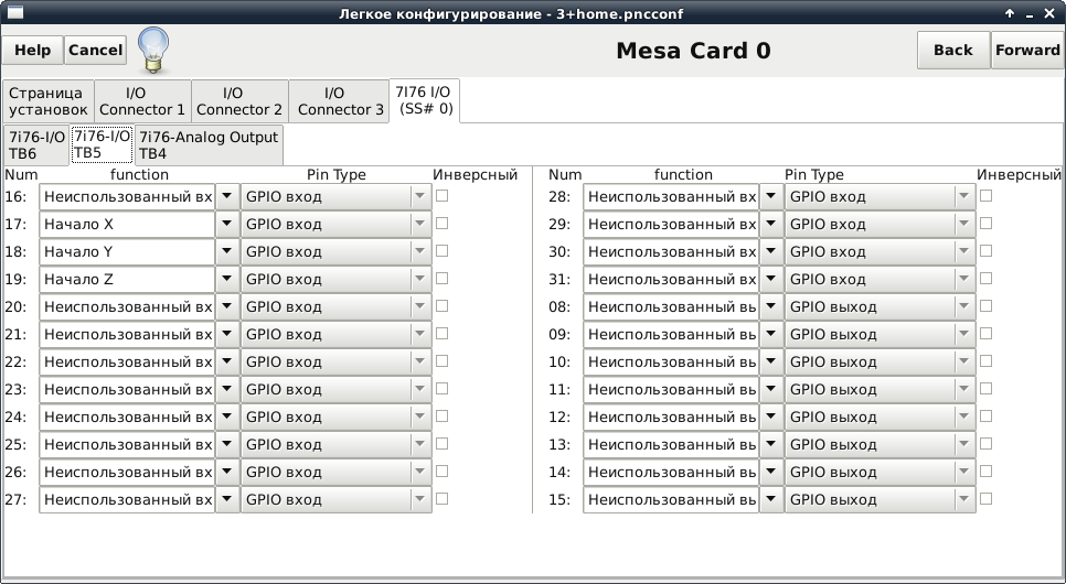 он описан во вкладке так как ТВ2 не был назван своим именем но работал (я предполагаю что он описан в I/O Connector 1) то я предположил что и другие разъемы не называются своими именами как на плате 7i76е а описаны во вкладках "I/O Connector 2" "I/O Connector 3"