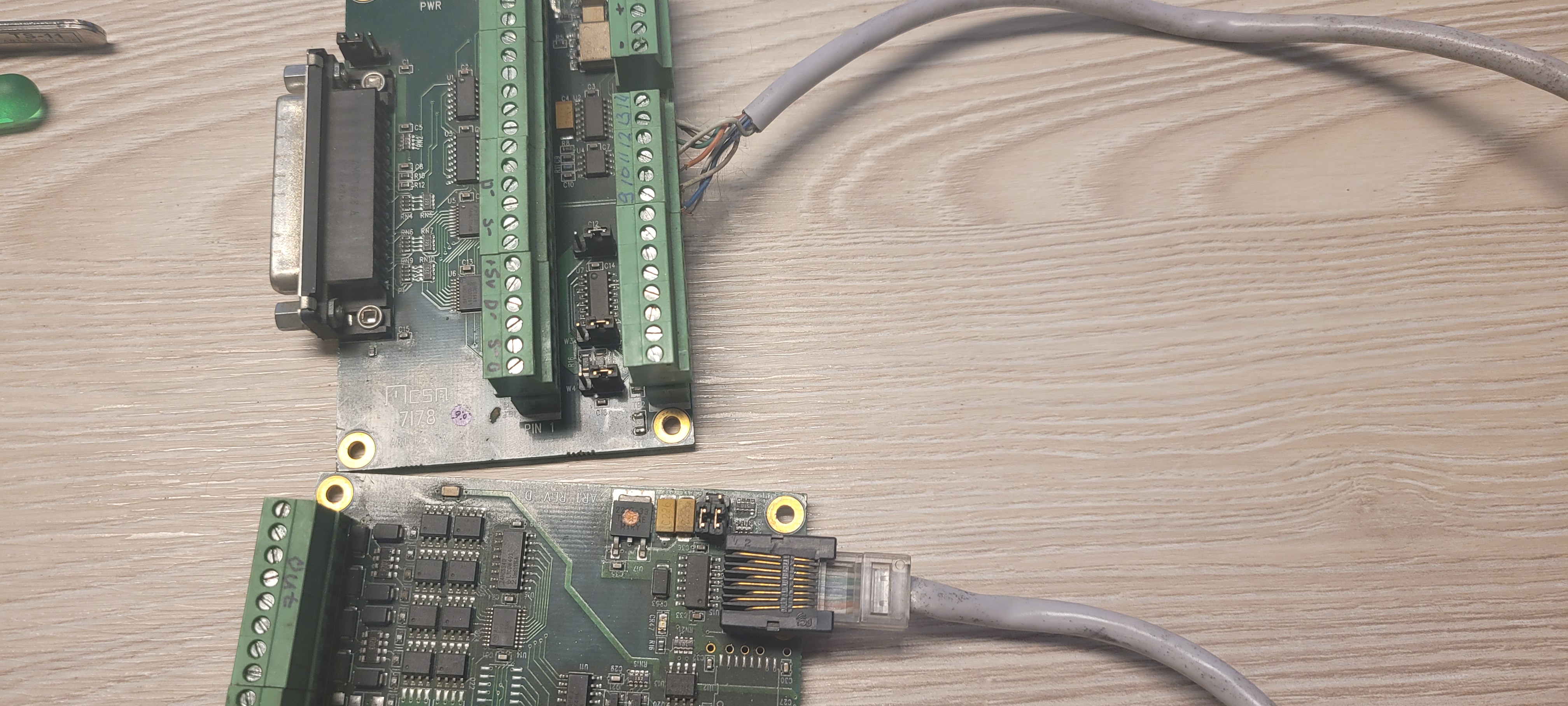 Есть комплект плат 5i25 + 7i78 + 7i66. Плата 5i25 соединена с платой 7i78 через lpt кабель. 7i78 соединена с 7i76 витой парой через распиновку в соответствии с документацией на платы.