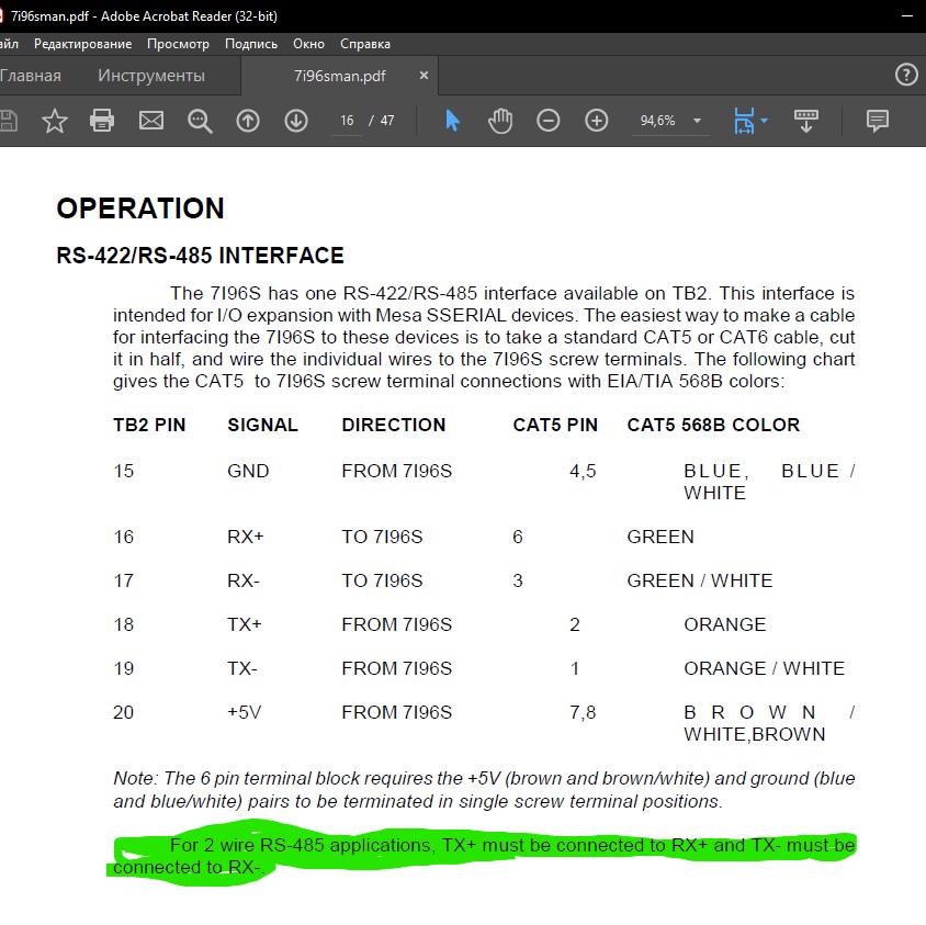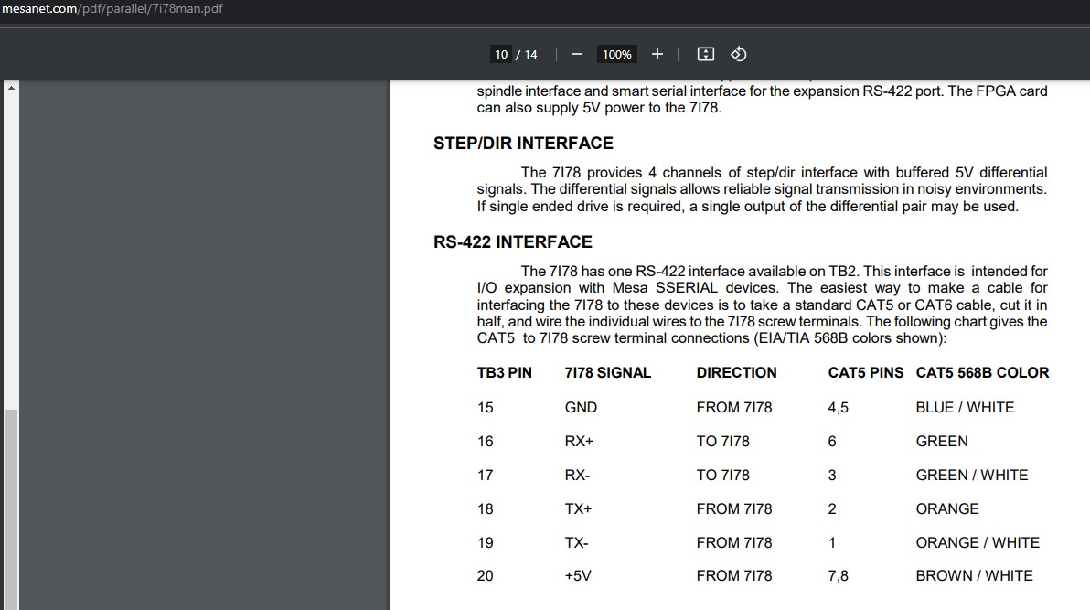 vko писал(а): 01 сен 2023, 01:02 Есть комплект плат 5i25 + 7i78 + 7i66. Плата 5i25 соединена с платой 7i78 через lpt кабель. 7i78 соединена с 7i76 витой парой через распиновку в соответствии с документацией на платы.