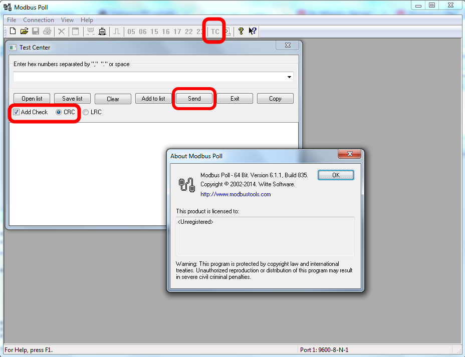 Далее установил программу Modbus Poll, с помощью которой можно отсылать и принимать пакеты Modbus, и , что немаловажно, она сама считает код CRC: