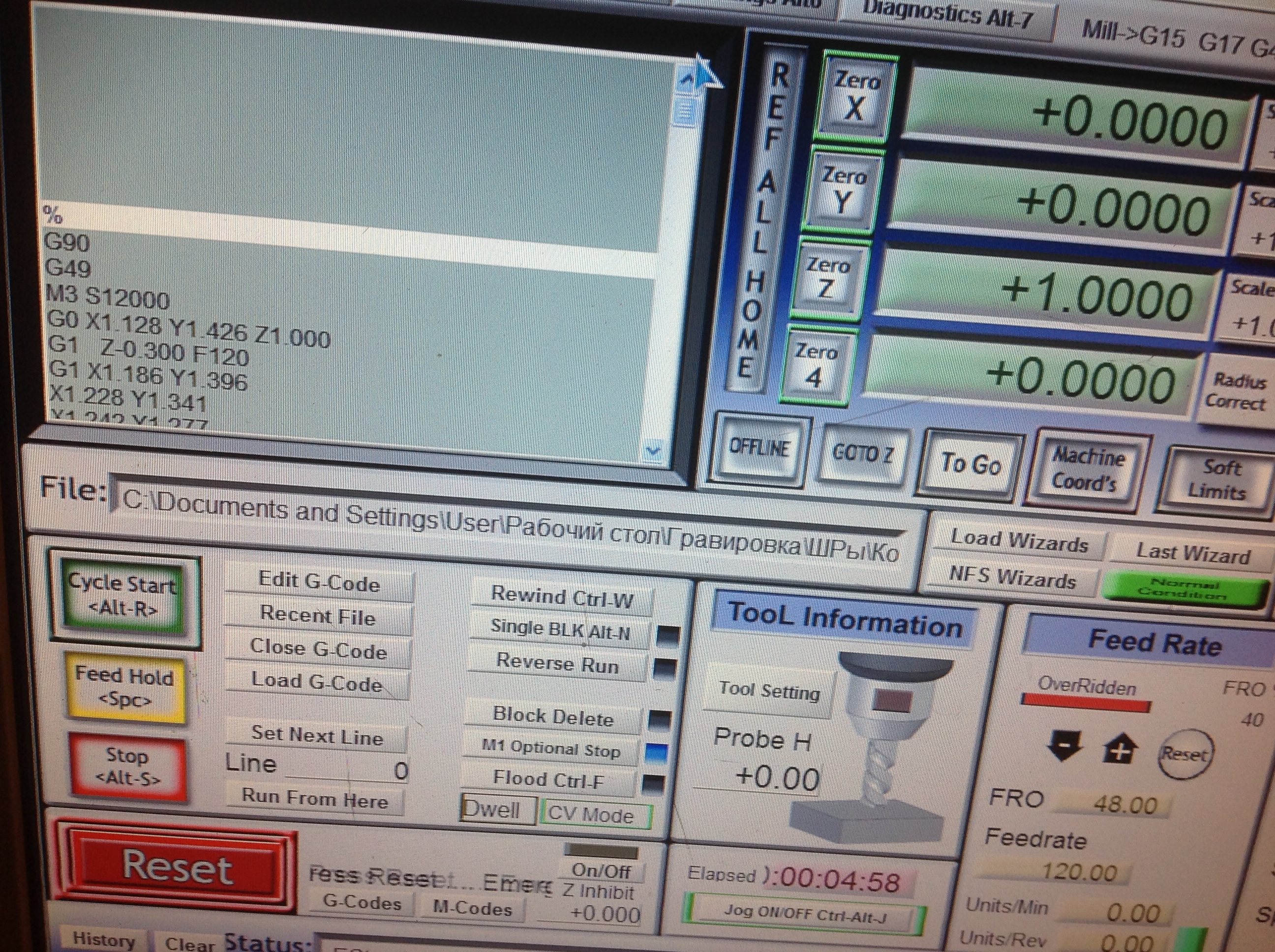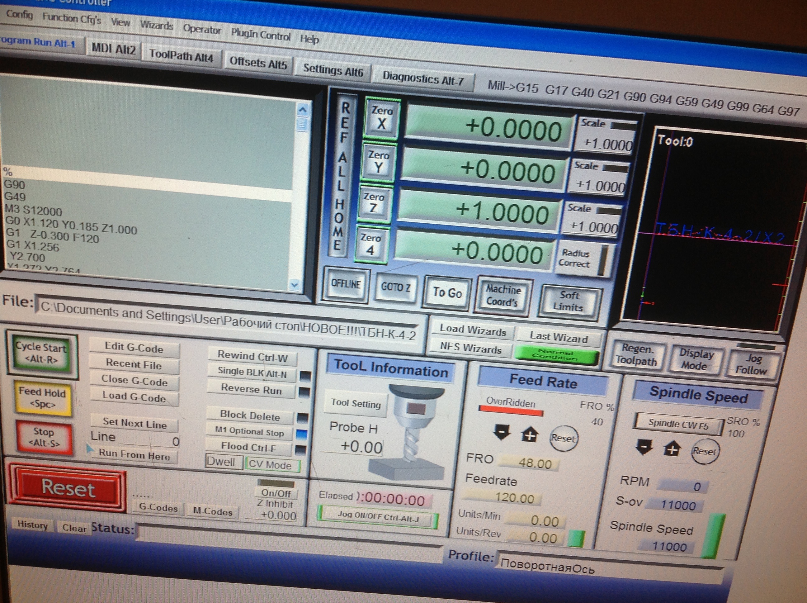 Доброго времени суток всем )))) работал с настроенной 4-ой осью.гравировал разъемы.сегодня до меня работал другой человек и что то нажал походу.теперь надпись гравируется зеркально да еще задом на перед.ось крутиться в другую от обычного сторону Помогите советом где кнопка? Создаю программу с арткаме,гравирую в мач3. Причем в маче в синем окошке(да простят меня за такие не цензурные выражения ) программа идет как надо. И в Арткаме все гуд.