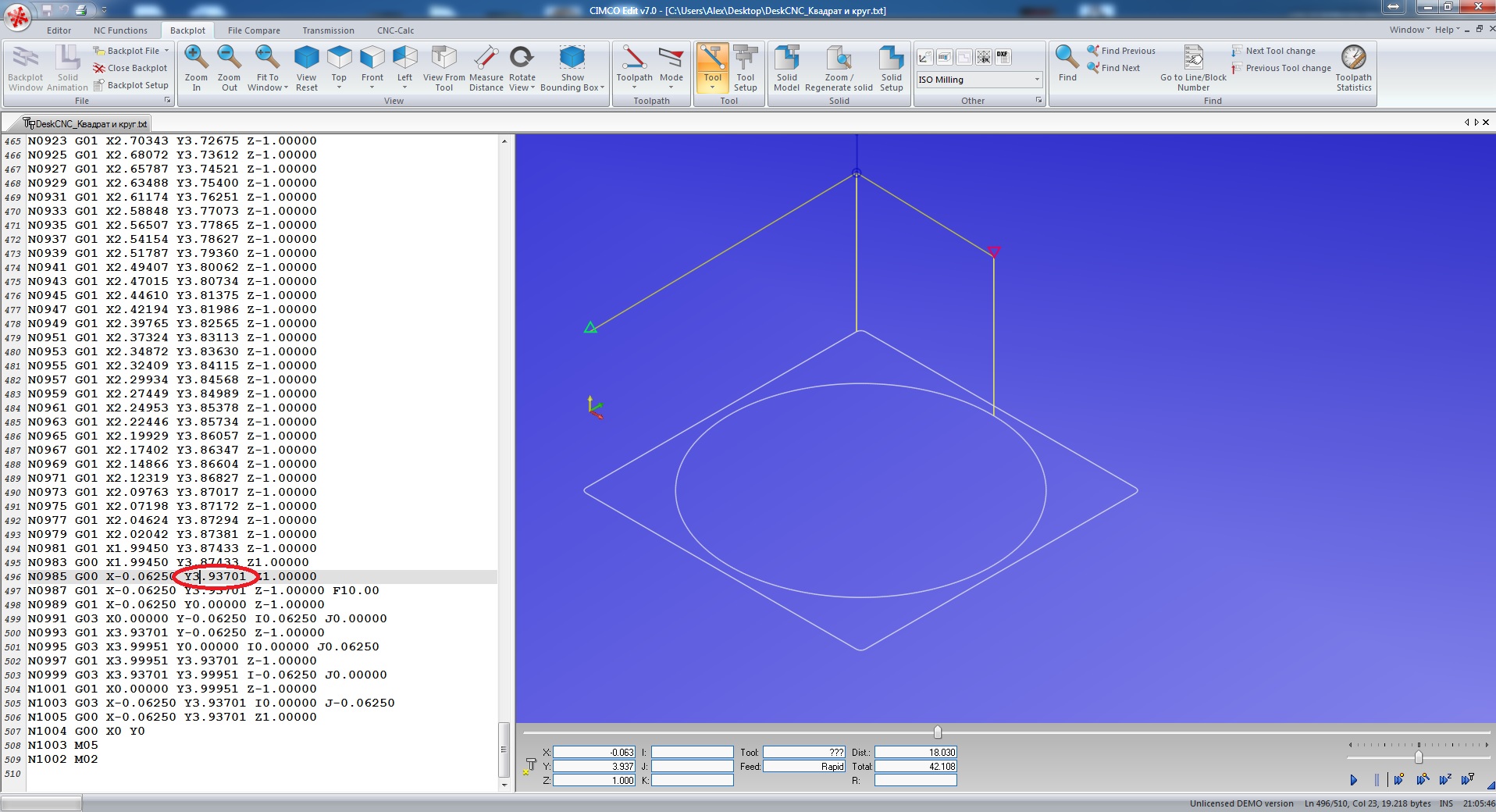 Делая в AutoCad, CorelDRAW, Квадрат 100*100 мм и круг вписан в него. Не как не могу добиться G-CODe (DeskCNC, LazyCam) с адекватными командами см: пример