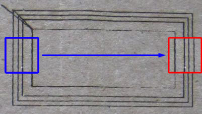 А на фанерке уже фигурка №2. Т.е. внутренний смещен. Рисует мач сначала внутренний, потом переезжает по диагонале (красненькой) и рисует внешний. И получается тут зазор 1.5 мм, а вверху 0.5.