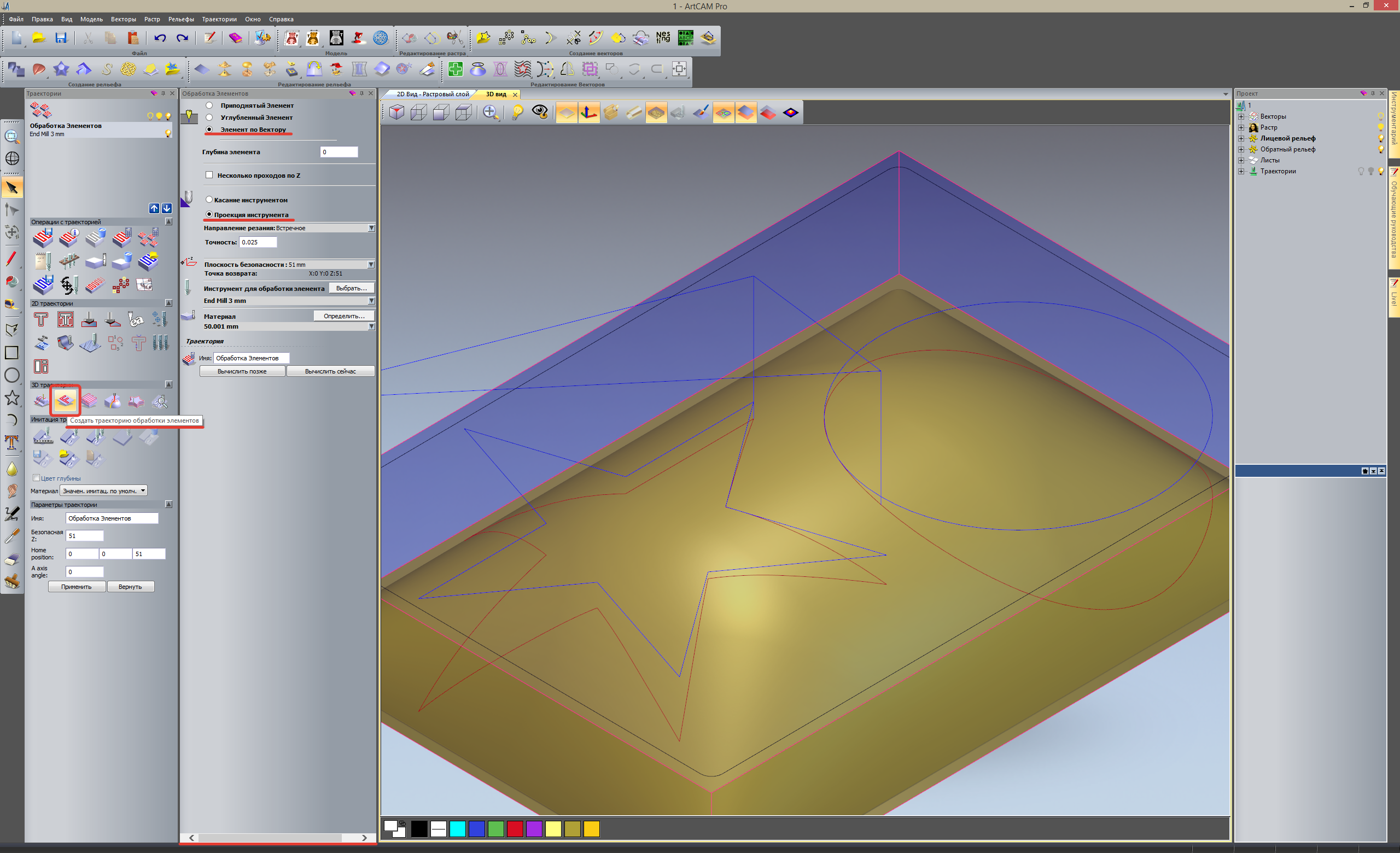 Вот нашел, как кнопка называется - "Создать траекторию обработки элементов":