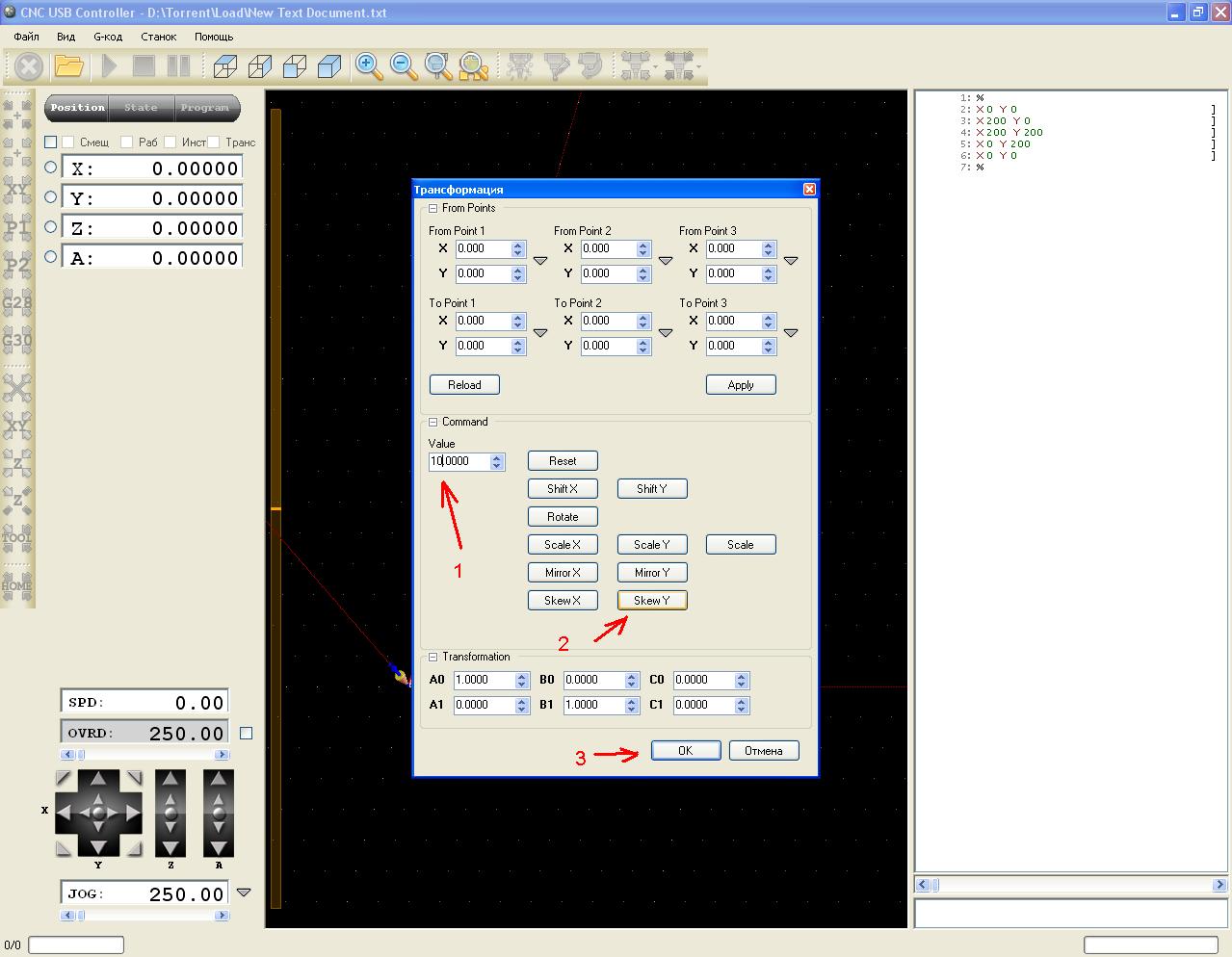 Кто знаком с настройками программы для корректировки G-кода неперпендикулярности XY-осей? "Методом тыка" по менюшкам масштабирования и трансформации не разобрался. Так и не понял как можно трансформировать исходный код. Продвинутые юзеры данного софта отзовитесь.