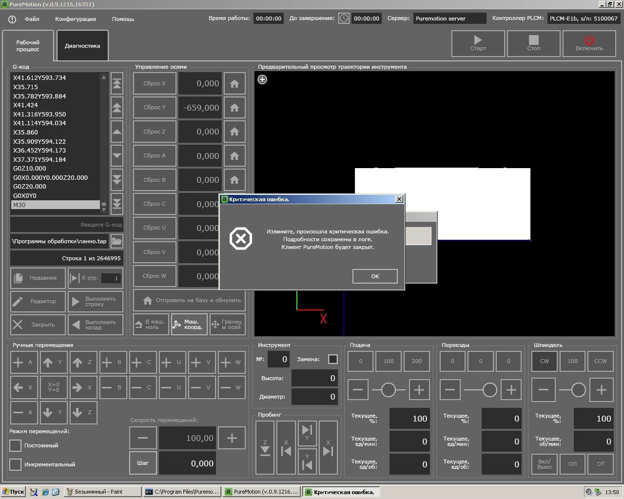 Как тут жарко. В общем с чего я начинал, к тому и пришел. Файл про который я писал ранее у меня открылся после того как я поставил в свойствах компьютера "обеспечить наилучшее быстродействие ". Более того открыл программу обработки с 1.2 млн. кадров и весом порядка 20 Мб. Потом на радостях я решил увеличить рекорд и тут на те. О чем писал ранее уважаемый "Prav".. Компьютер у меня конечно не из самых навороченных, но все-же тот же Маch 3 справлялся с таким заданием и на более слабеньком железе. В итоге решено для пробы увеличить оперативку в 2 раза. Честно говоря нет пока никакого желания отправлять отчеты ошибок - зная наперед, что тебе напишут в ответ. Хочу сказать еще раз, что программа мне нравится своим дизайном и простотой. Не нравится излишняя требовательность к железу и только годовая лицензия. Кстати менеджер продавший мне этот софт, тоже пытался меня обмануть предлагая более дорогой Enternet контроллер ссылаясь на то, что идущий в комплекте с PM не работает с другими программами.
