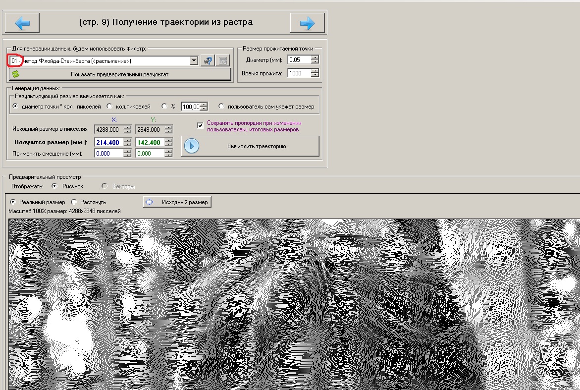 если я правильно понимаю, то результат этого фильтра обрабатывается для выжигания точкой