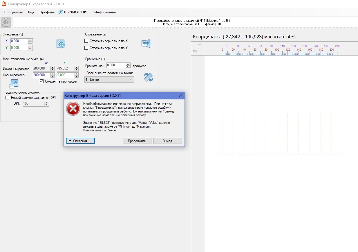 Смещаю в начало: Выдаёт ошибку: Может попробовать в другой версии DXF сохранять из Corel? С PLT таких фокусов нет.