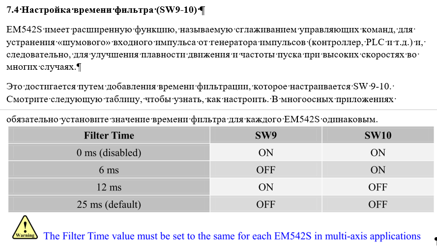 Мы с Leadshine плотно не работали и как влияет этот фильтр я точно сказать не могу, но, как мне кажется, 25мс - это очень сильный фильтр. Я бы выключил его совсем.StavRos писал(а):В обоих случаях оставлял настройку по дефолту - на 25 мкс.