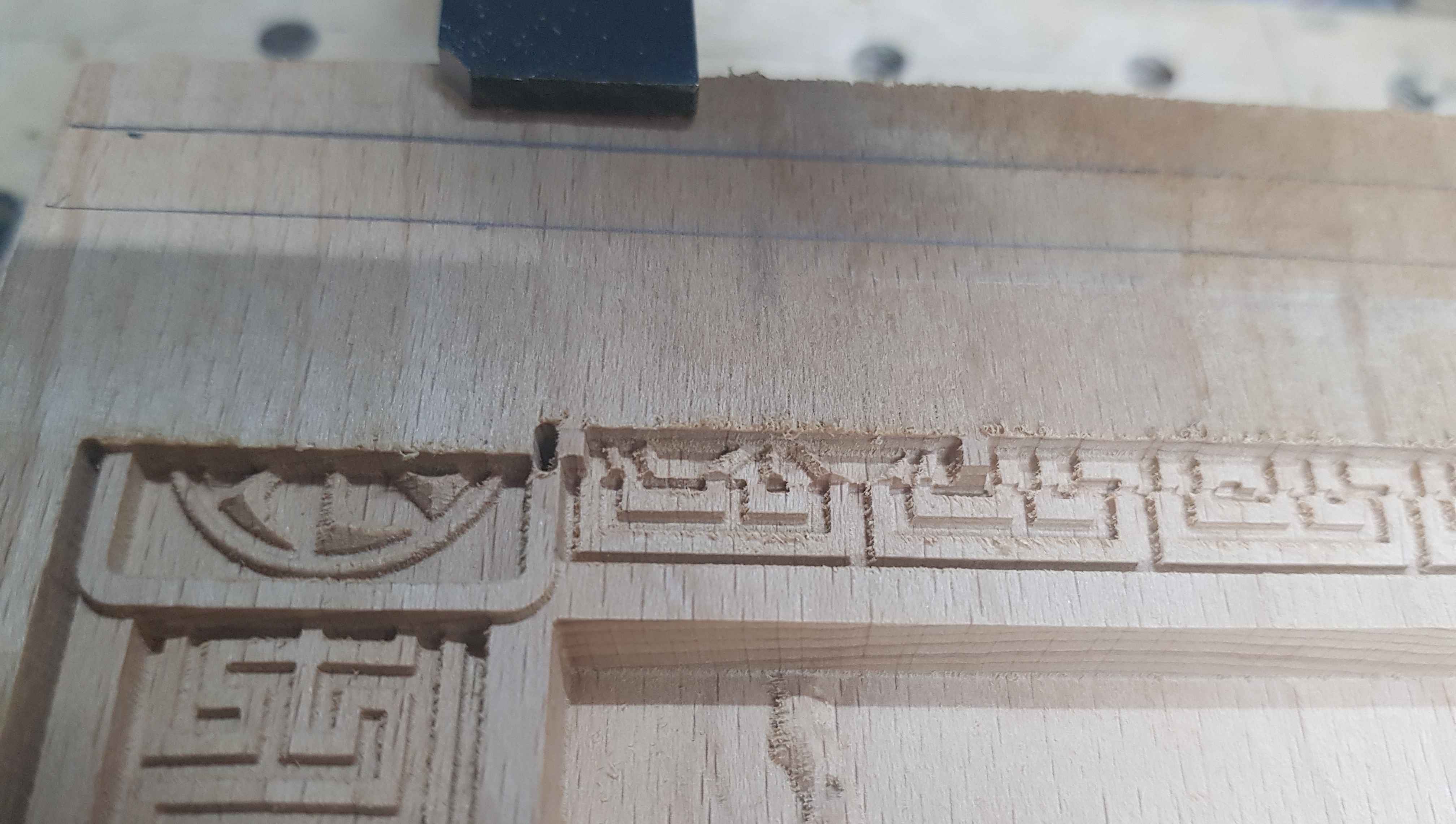 Десять часов из 11 общих - нормальная работа. Затем потеря связи и, естественно, остановка. Причём, не просто так, а, как показал запуск УП с места останова - с диким смещением координаты по Х. На фото хорошо видно, что рельеф по Х съехал ровно на величину одного из элементов: